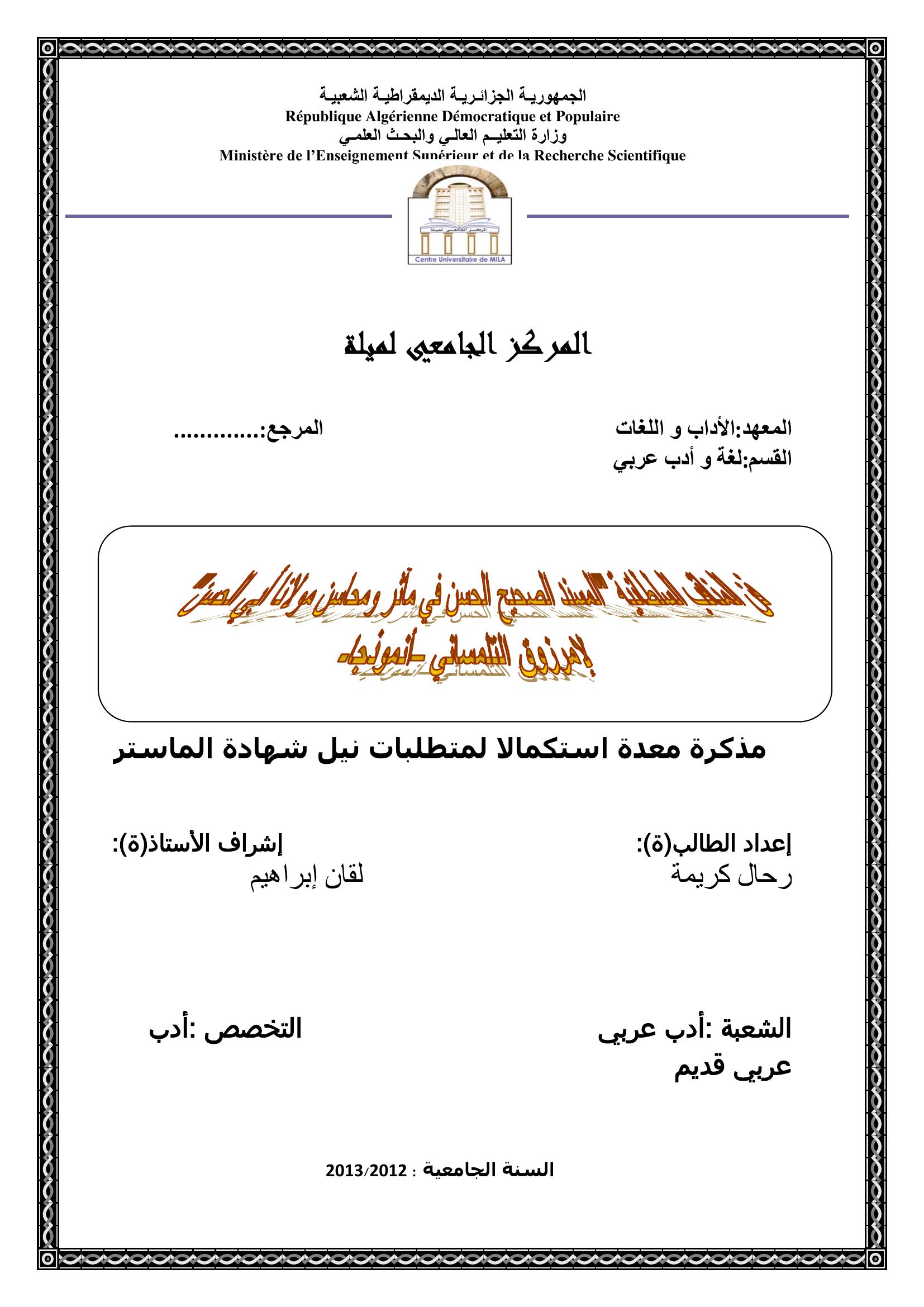 رحال كريمة & لقان ابراهيم (مشرفا) (2013). فن المناقب السلطانية ''المسند الصحيح الحسن في مآثر ومحاسن مولانا أبي الحسن ''لإبن مرزوق التلمساني ــ نموذجاـ.