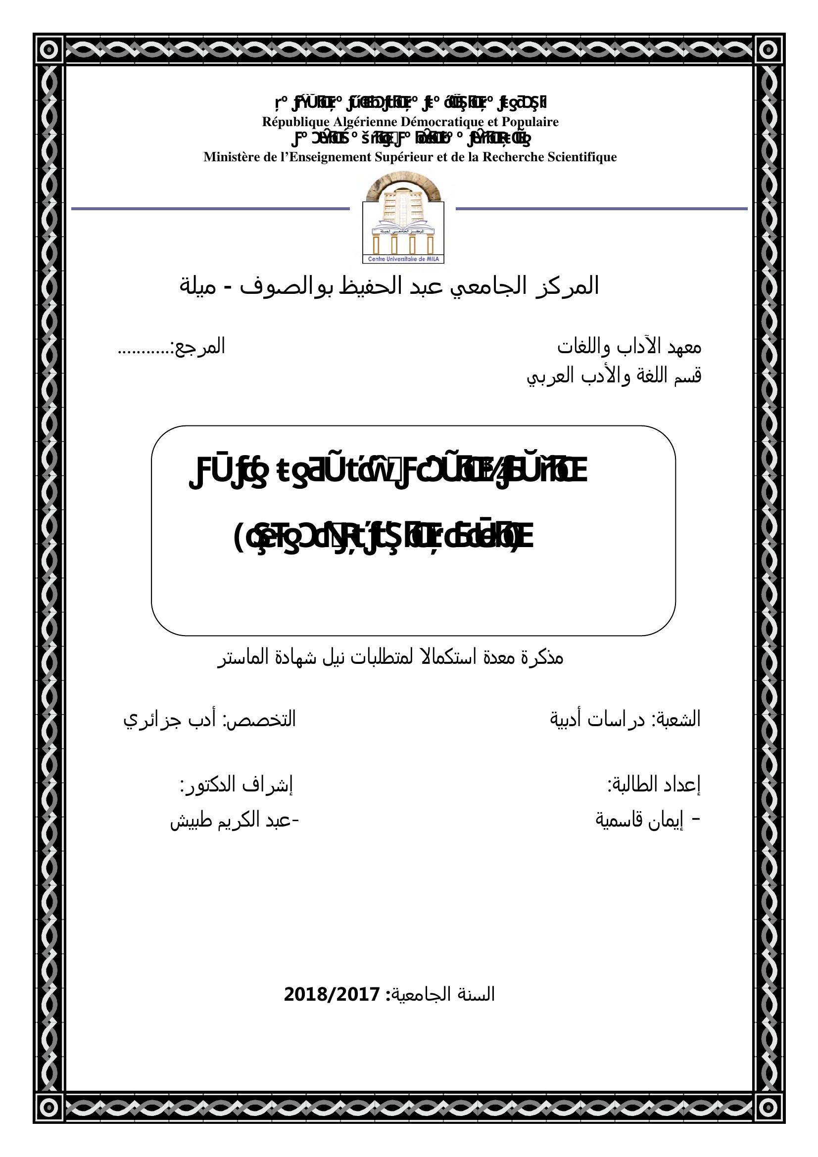 قاسمية إيمان & طبيش عبد الكريم(مشرفا) (2018). التشكيل الزمني عند زهور ونيسي (الساكنة الجديدة أنموذجا ).