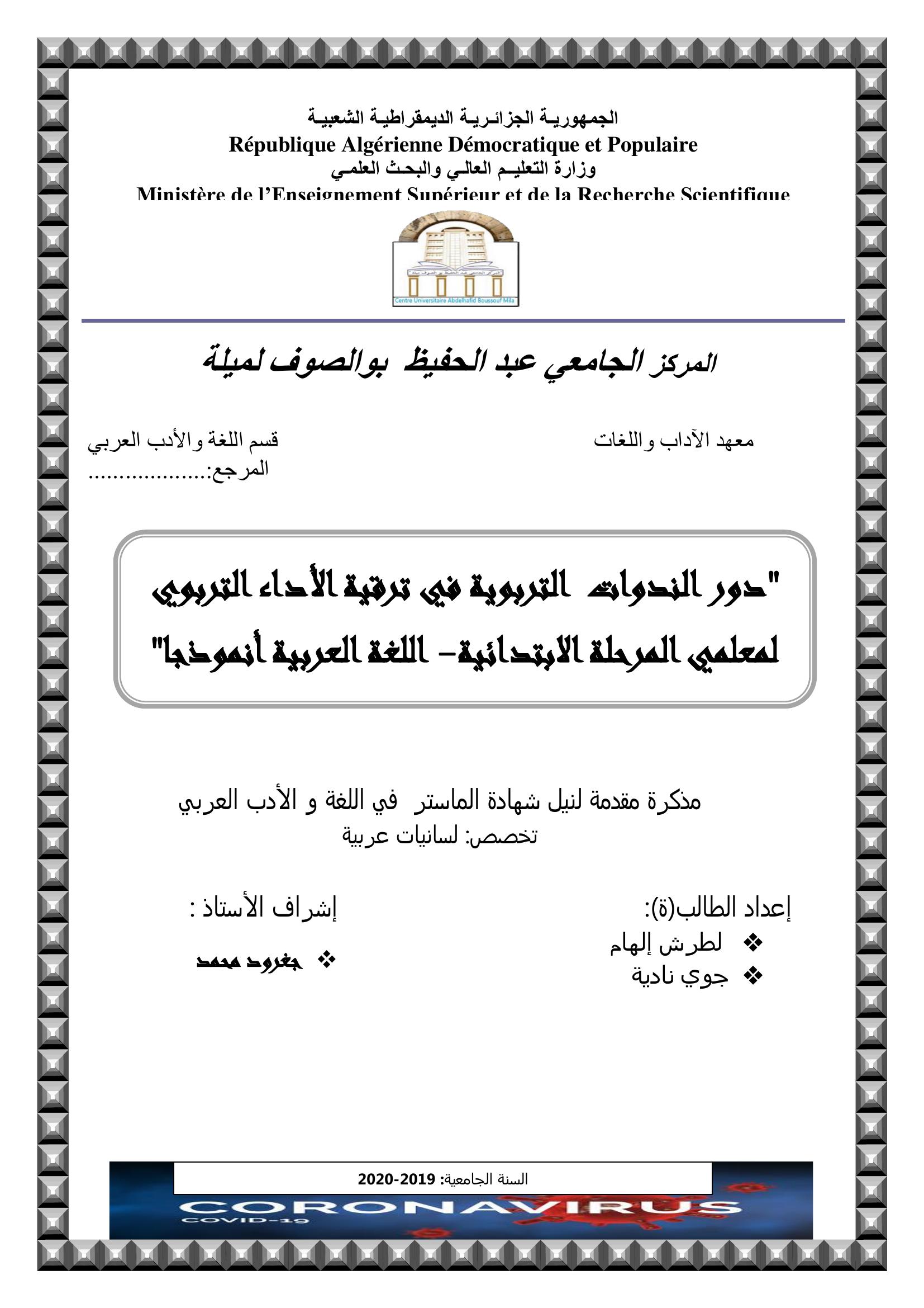 لطرش إلهام et al. (2020). دور الندوات التربوبة في ترقية الأداء التربوي لمعلمي المرحلة الأبتدائية مادة اللغة العربية أنمودجا.