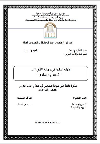 شريفي شامة et al. (2021). دلالة المكان في رواية " فاي " زوبير بن سخري (ليسانس- ل م د) . المركز الجامعي عبد الحفيظ بوالصوف ميلة.