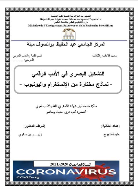قاجوج حليمة & بن سخري زبير (مشرفا) (2021). التشكيل البصري في الادب الرقمي نمادج مختارة من الانستغرام واليوتيوب (ماستر- ل م د) . المركز الجامعي عبد الحفيظ بوالصوف ميلة.