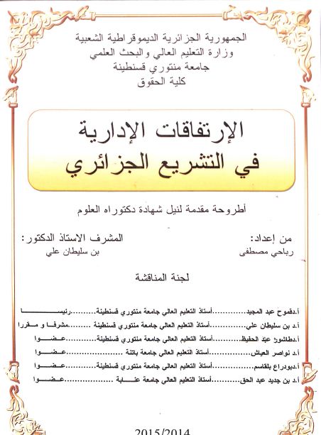 رباحي مصطفى & بن سليطان علي (مشرفا ومقررا) (2015). الارتفاقات الادارية في التشريع الجزائري (دكتوراه) . قسنطينة.