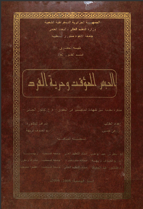ربيعي حسين & بوالصوف نزيهة(مشرفا ومقررا) (2009). الحبس المؤقت وحرية الفرد (ماجستير) . قسنطينة.
