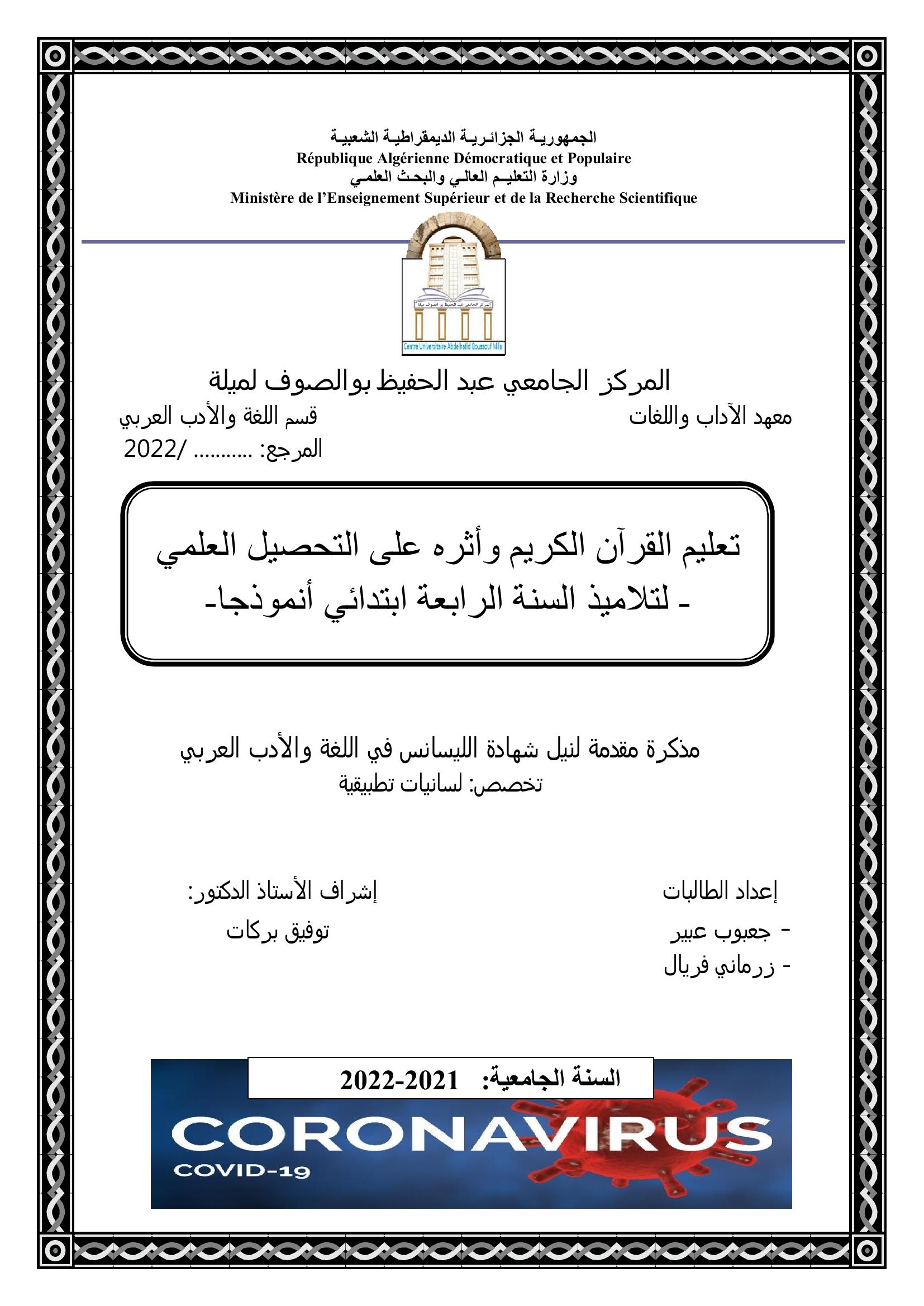 جعبوب عبير et al. (2022). تعليم القرآن الكريم وأثره على التحصيل العلمي لتلاميذ السنة الرابعة ابتدائي أنموذجا.