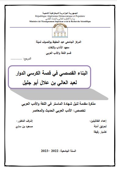 كشبار رفيقة et al. (2023). البناء القصصي في قصة الكرسي الدوار لعبد العالي بن علال أبو جليل (ماستر- ل م د) .