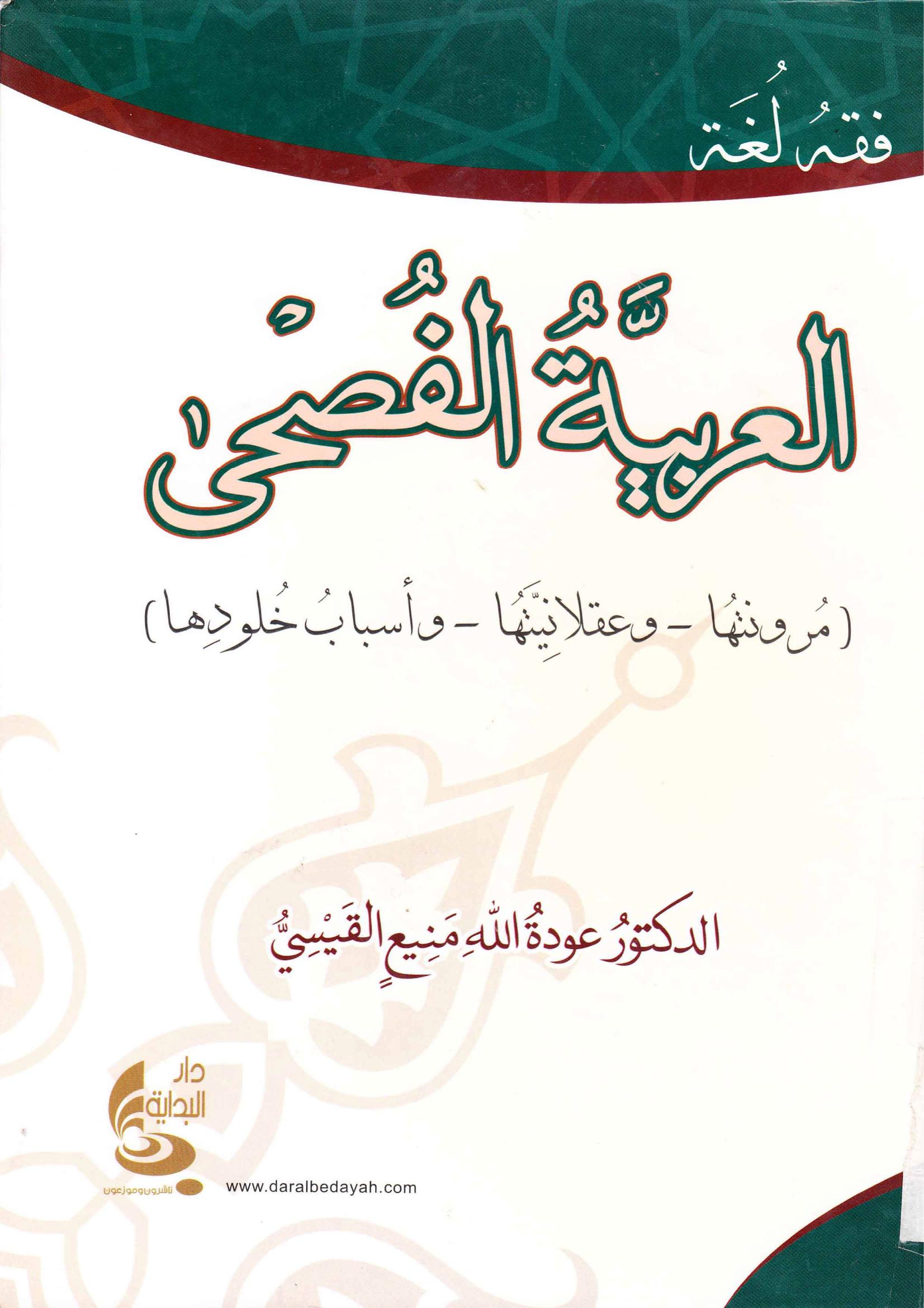عودة الله منيع القيسي (2008). العربية الفصحى (ط.1) . دار البداية ناشرون وموزعون;