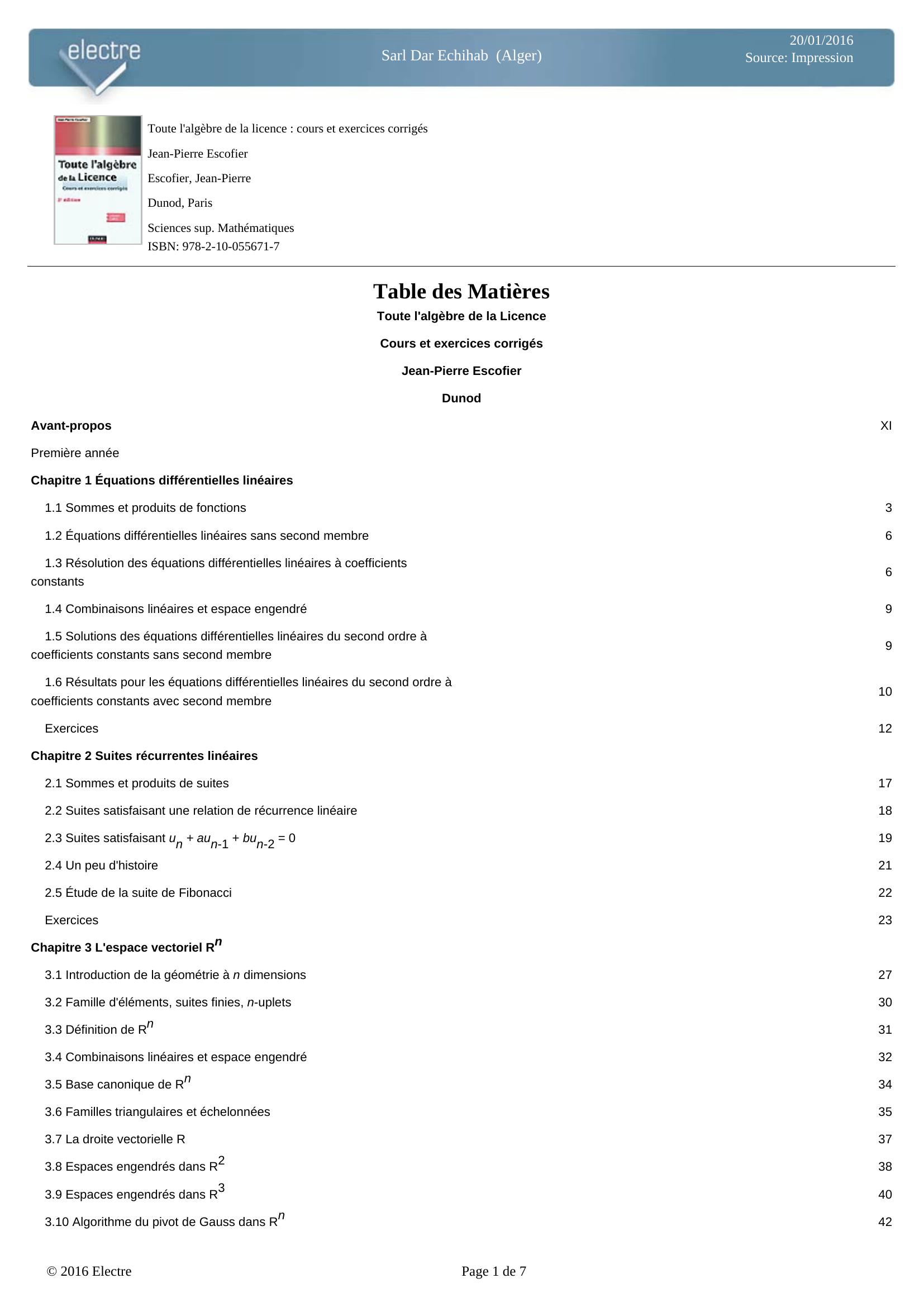 Jean-Pierre Escofier (2006). Toute l'algèbre de la licence (2.éd) . Dunod;
