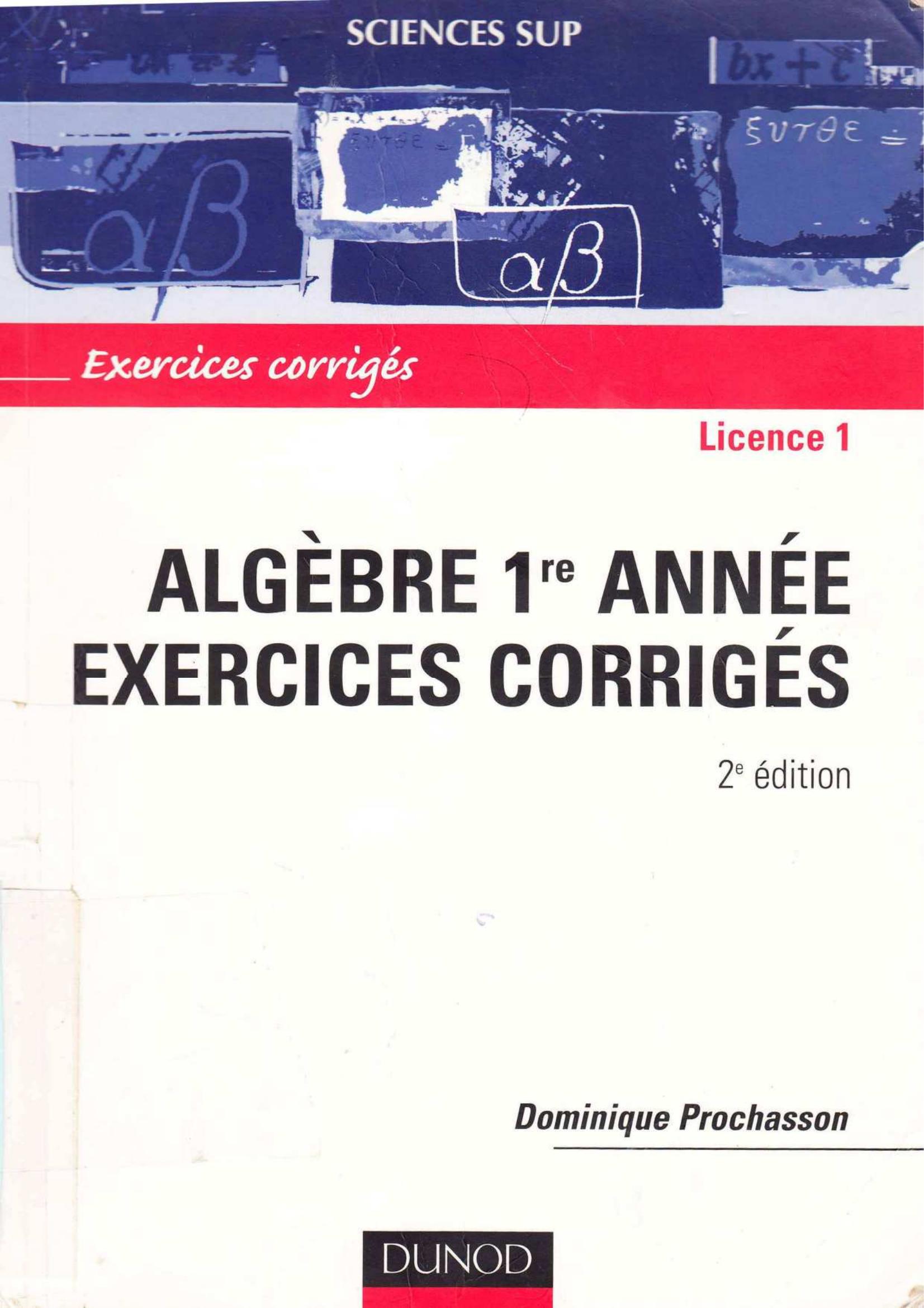Dominique Prochasson (2003). Algèbre 1 année exercices corrigés (2.éd) . Dunod;