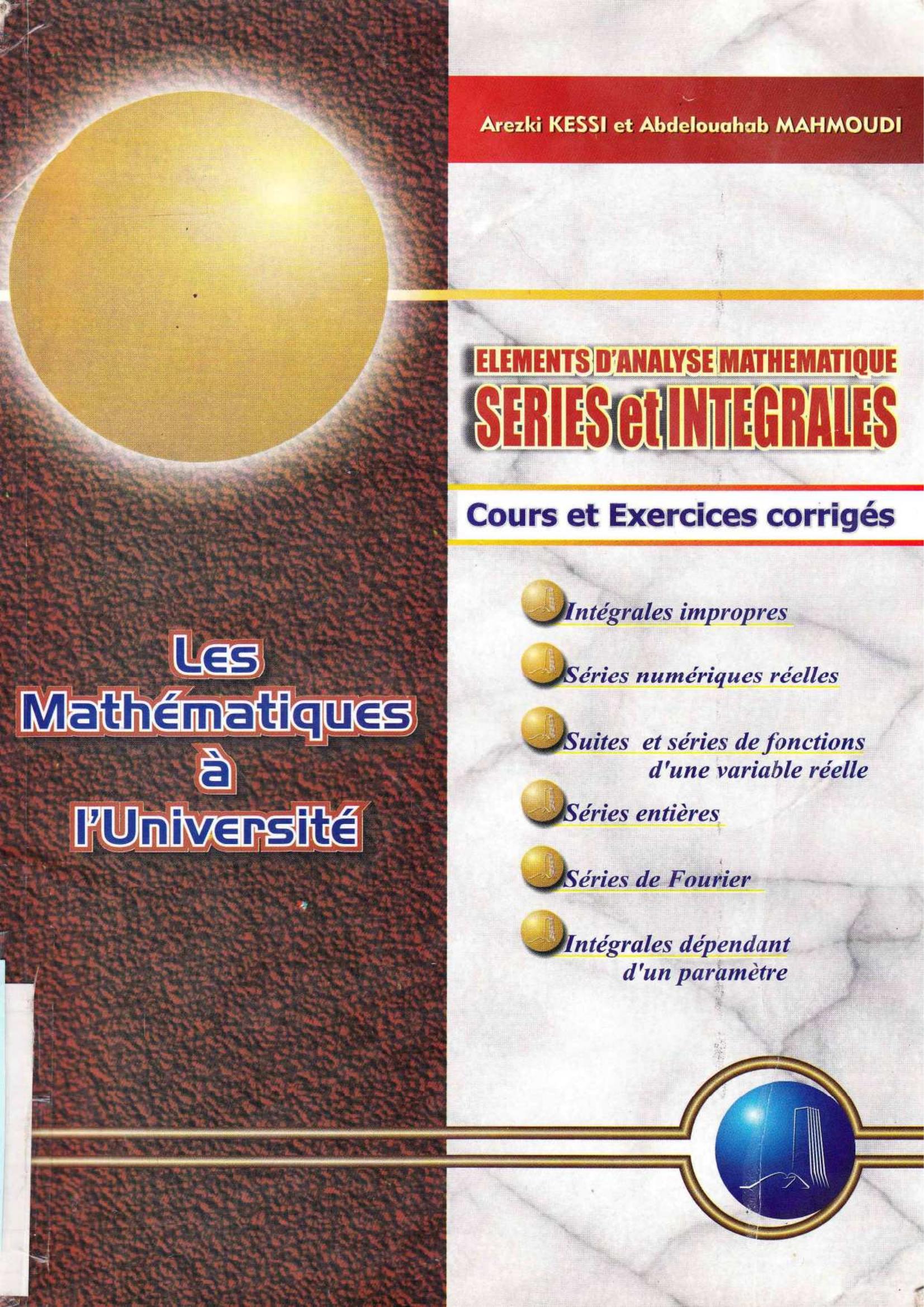 Arezki Kessi & Abdelouahab Mahmoudi (2001). Eléments d'analyse mathématique series et intégrales . Université Mentouri Constantine;
