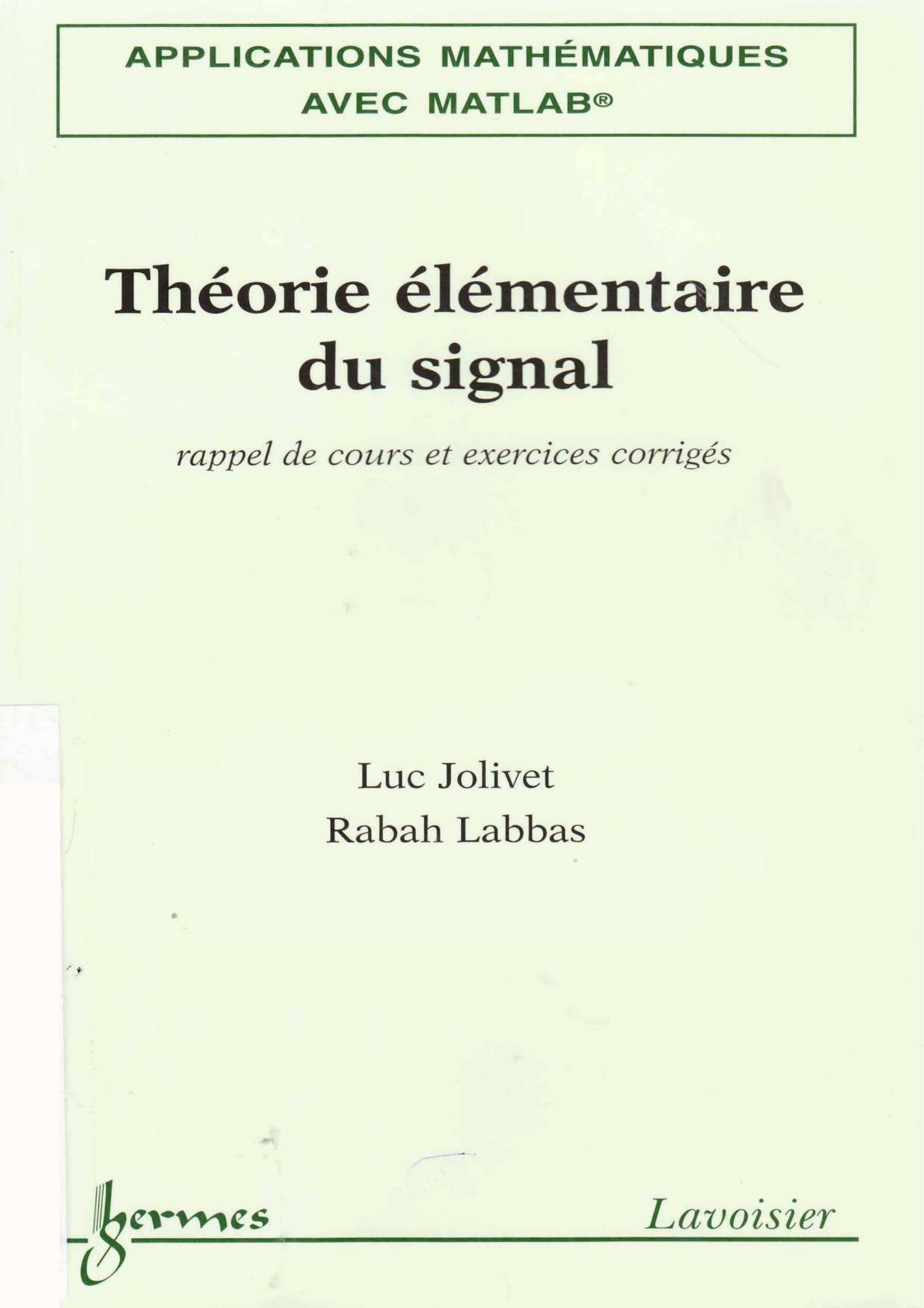 luc jolivet rabah labbas (2005). Théorie élémentaire du signal (1ed.) . Lavoisier;