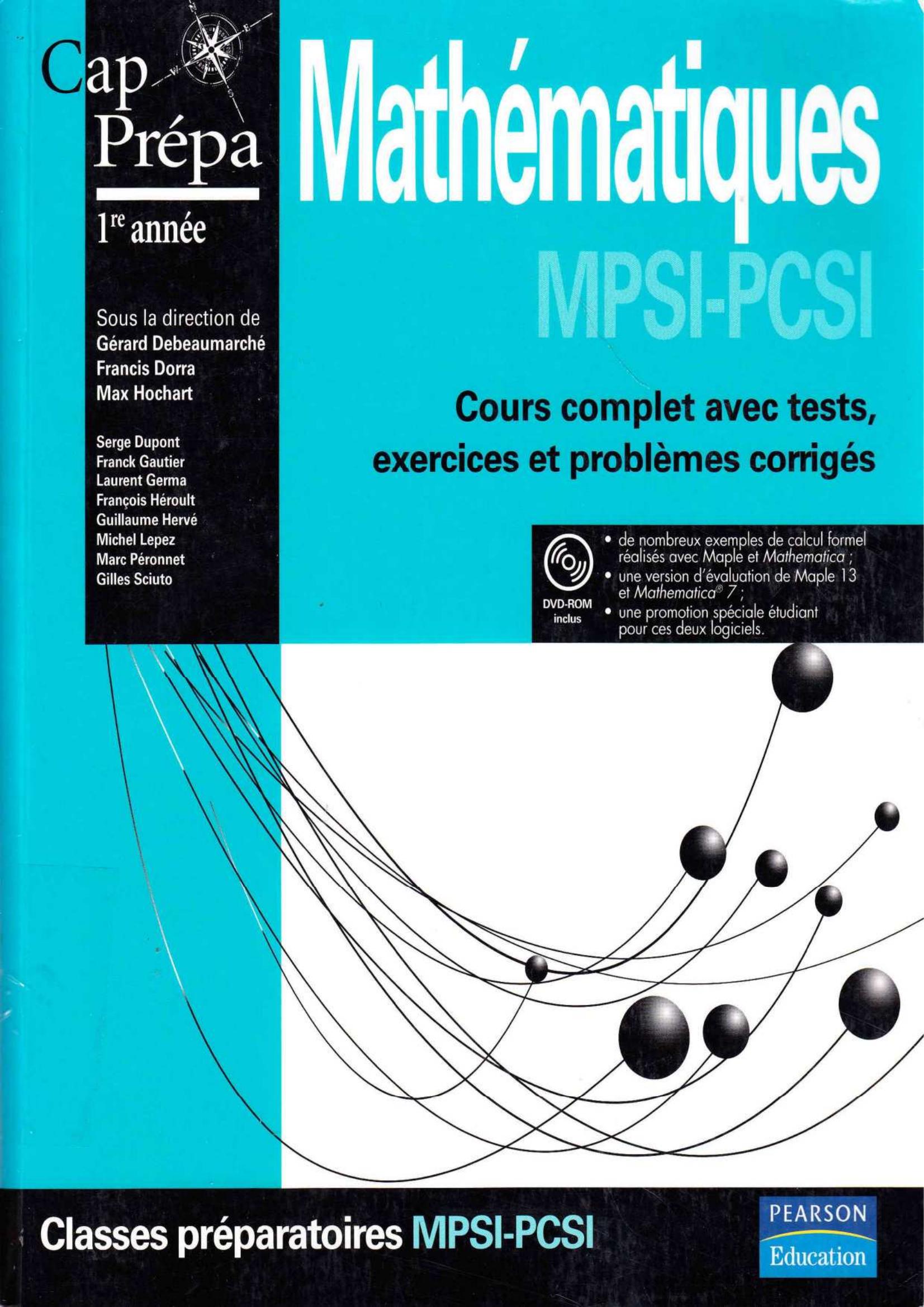 Ce manuel couvre l'ensemble du programme des premières années MPSI et PCSI : la première période, étude des suites et des fonctions, calcul différentiel et intégral à une et deux variables, arithmétique, algèbre linéaire, géométrie euclidienne. Il s'attache dès le départ à faire ressortir les raisons d'être et le sens de toutes les notions introduites, qui s'enrichissent ensuite progressivement. La présentation approfondie des objets étudiés est complétée par un effort pédagogique permanent. De nombreux exemples vous permettent d'assimiler les techniques mises en oeuvre. Des encadrés "Rappel", "Attention", "Méthode" et "Synthèse" reprennent les notions fondamentales, soulignent les pièges à éviter, récapitulent la marche à suivre pour résoudre les problèmes et synthétisent les notions complexes. Des questions tests sont posées au fil du texte et valident les acquis progressivement. De très nombreux exercices (intégralement corrigés) et des problèmes vous permettre d'appliquer les méthodes présentées. L'essentiel du cours est résumé sous la forme d'un formulaire à la fin de chaque chapitre : vous apprécierez de pouvoir vous y référer juste avant un devoir sur table pour réactiver vos connaissances. Les principales commandes des logiciels Maple et Mathematica, dont la maîtrise est nécessaire en classe préparatoire, sont détaillées de façon logique au fil de l'ouvrage. Le DVD-ROM joint au livre donne de nombreux exemples de leur utilisation et permet de comprendre l'intérêt du calcul formel pour la résolution de certains problèmes. Véritable ouvrage de référence pour la préparation aux concours, ce livre se fixe aussi pour objectif de présenter les bases des mathématiques de façon claire, rigoureuse et détaillée. Un manuel unique, qui correspond à vos besoins et qui deviendra vite votre guide pour garder le cap vers la réussite dans les épreuves de mathématiques ! Un DVD-ROM comprenant : de nombreux exemples de calcul formel réalisés avec Maple et Mathematica ; une version gratuite de 60 jours de Maple 13 et de Mathematica 7 ; une promotion spéciale étudiant pour ces deux logiciels.