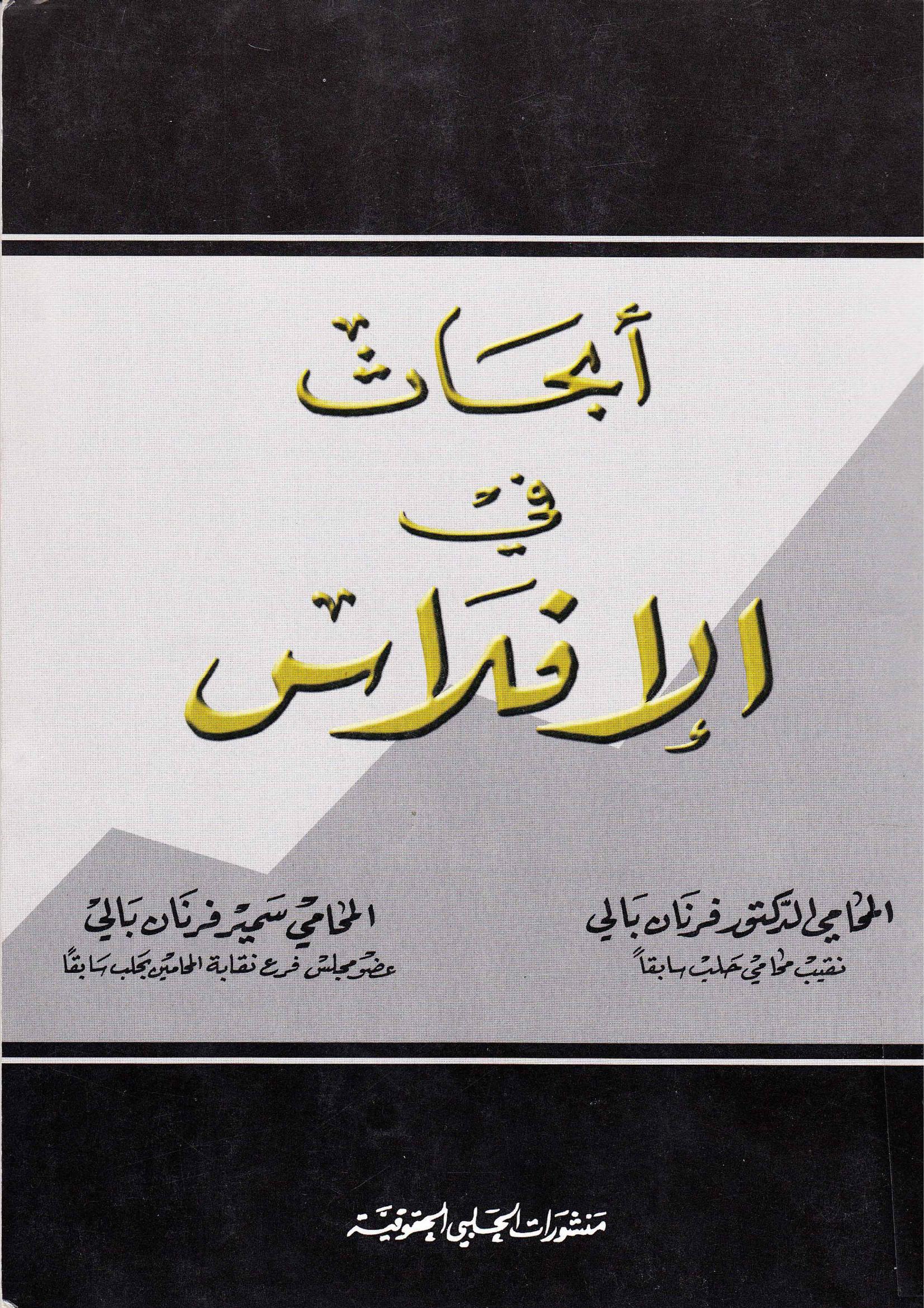 فرنان بالي (2009). أبحاث في الإفلاس (ط1.) . منشورات الحلبي الحقوقية;