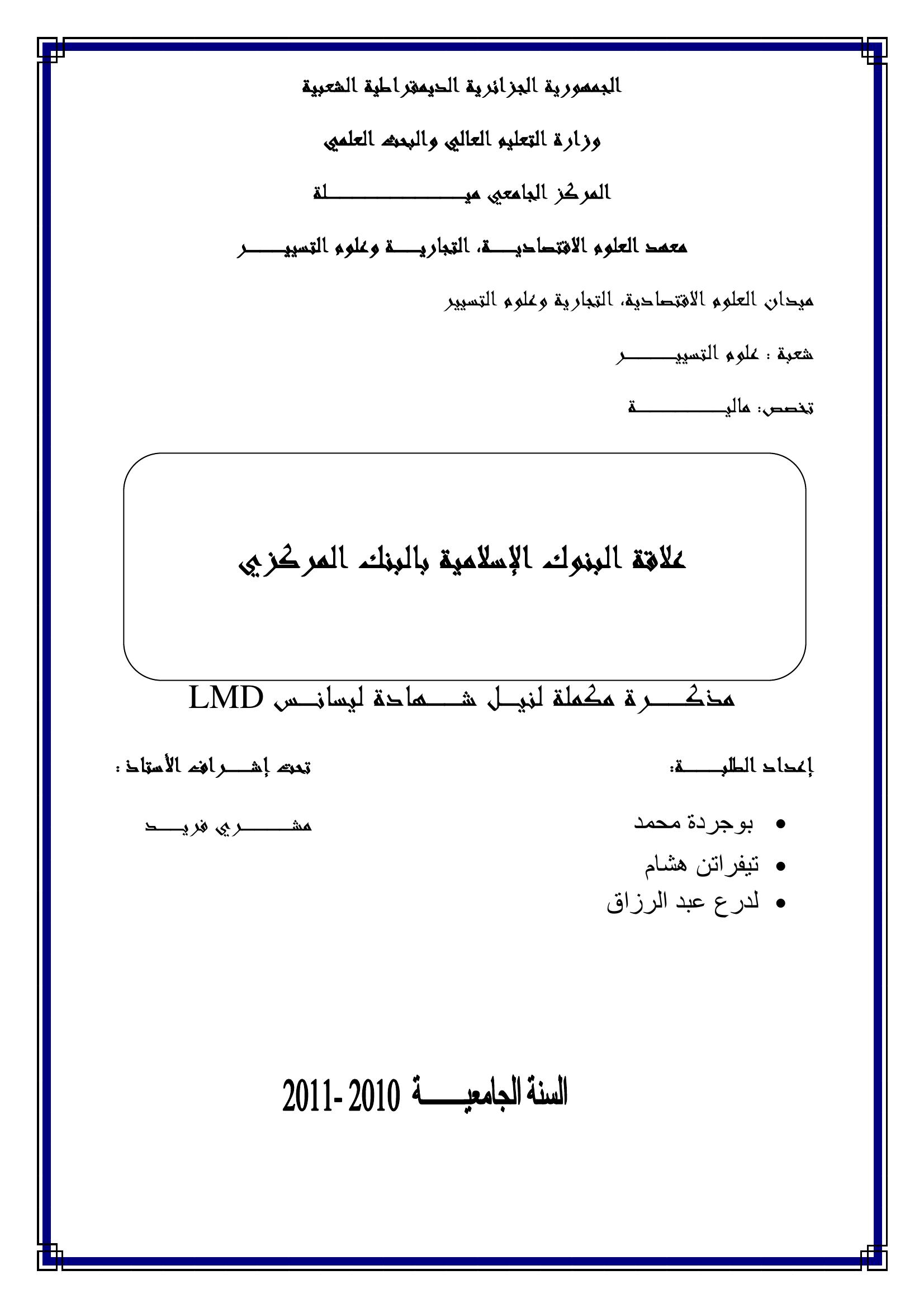 بوجردة محمد & ،مشري فريد(رئيسا)،زواري فرحات سليمان(مناقشا)،قطاف عقبة(مشرفا ومقررا) (2011). علاقة البنوك الإسلامية بالبنك المركزي.
