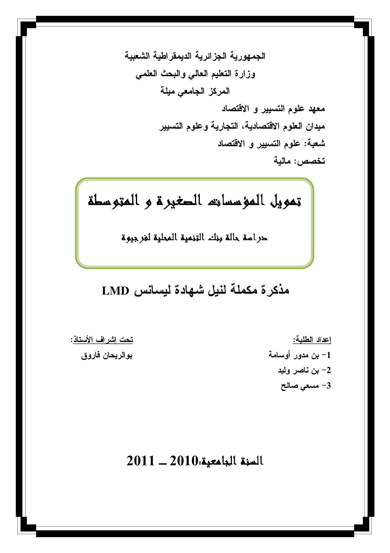 تمويل المؤسسات الصغيرة و المتوسطة دراسة حالة بنك التنمية المحلية لفرجيوة