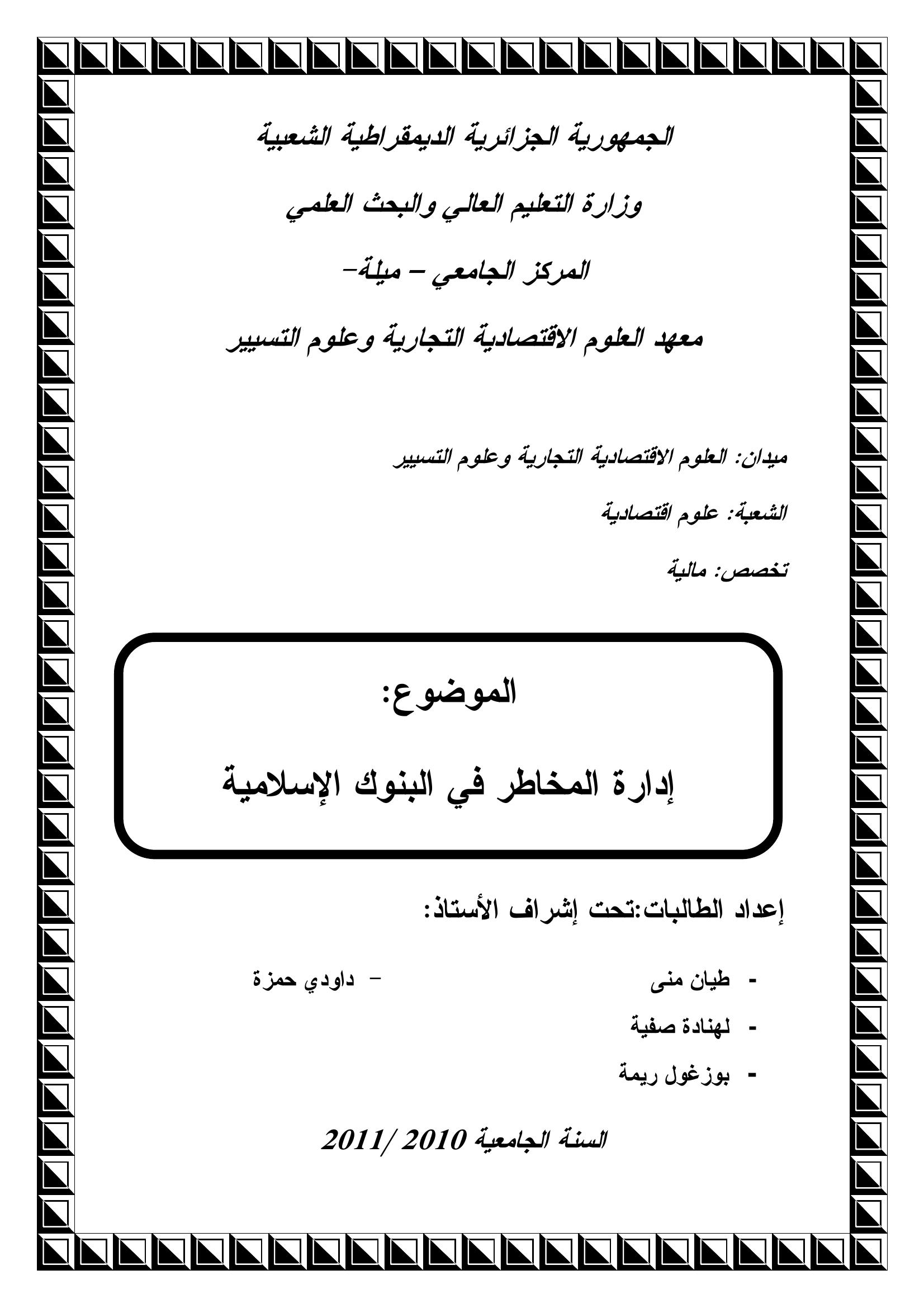 طيان منى & داودي حمزة (مشرفا) (2011). إدارة المخاطر في البنوك الإسلامية.