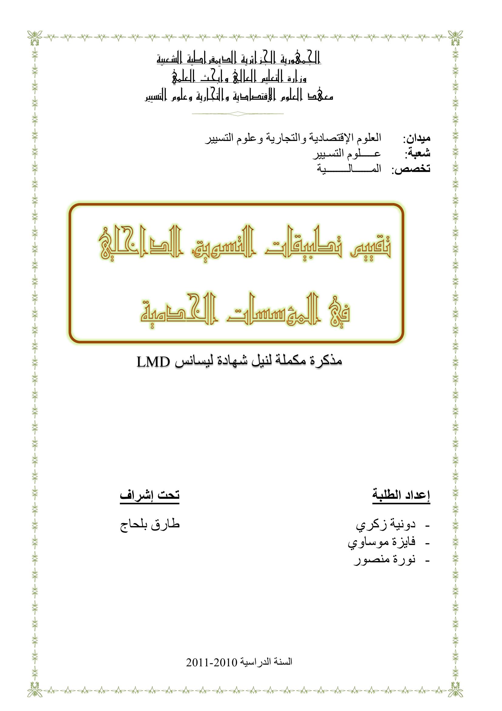 دونية زكري et al. (2011). تقييم تطبيقات التسويق الداخلي في المؤسسات الخدمية.