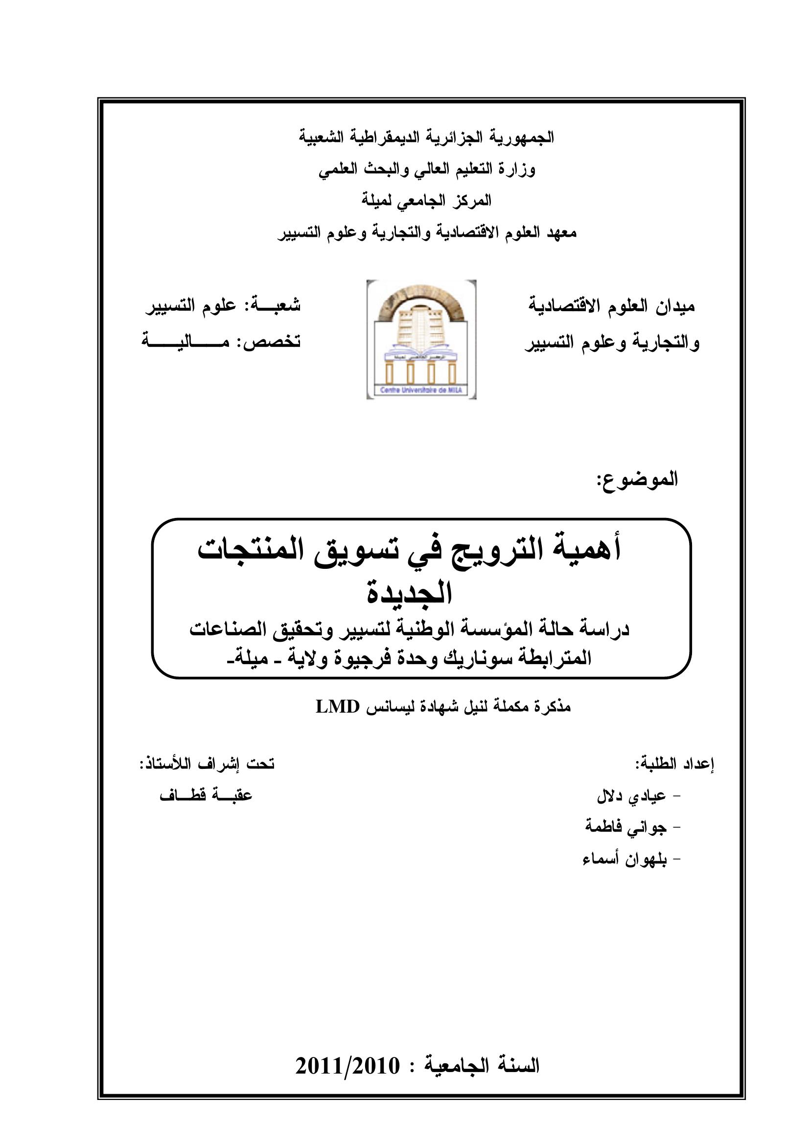 عيادي دلال & عقبة قطاف(مشرفا) (2011). أهمية الترويج في تسويق المنتجات الجديدة دراسة حالة.