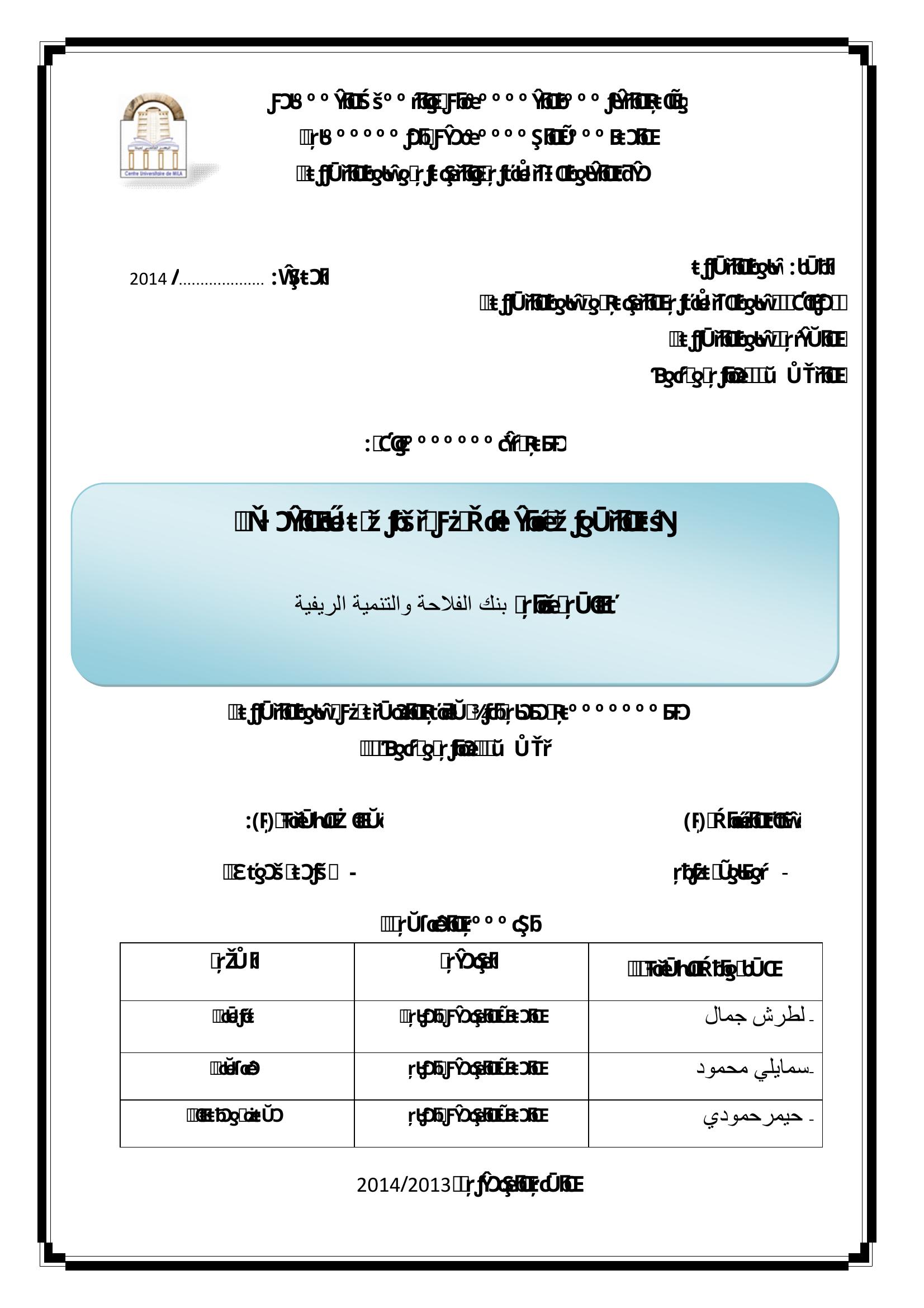 بوكلوز رفيقة & ،لطرش جمال(رئيسا)، سمايلي محمود(مناقشا)، حيمر حمودي(مشرفا ومقررا) (2014). أثر التسويق بالعلاقات في تحقيق رضا العملاء.