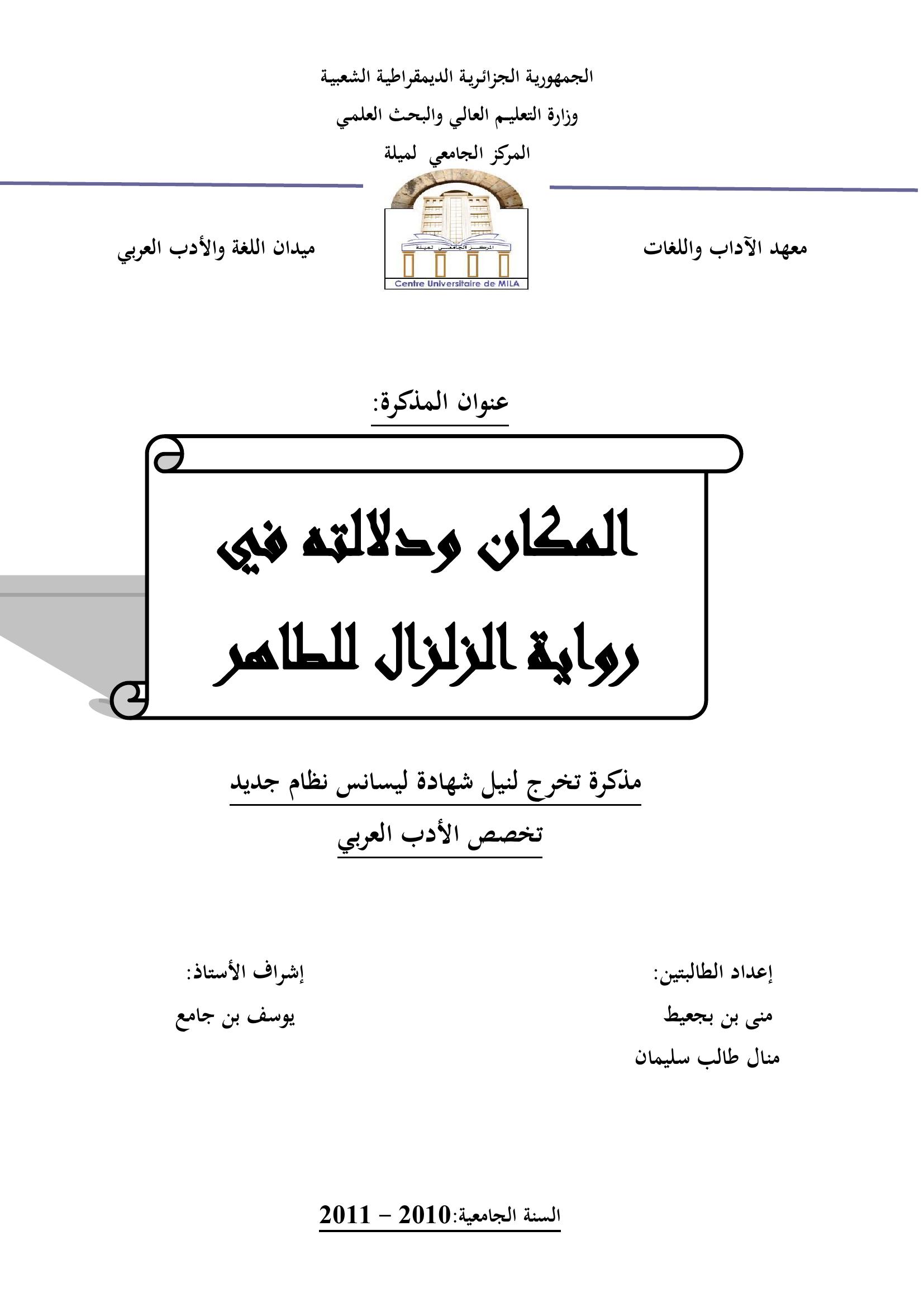 منى بن جعطيط et al. (2011). المكان ودلالته في رواية الزلزال للطاهر وطار.