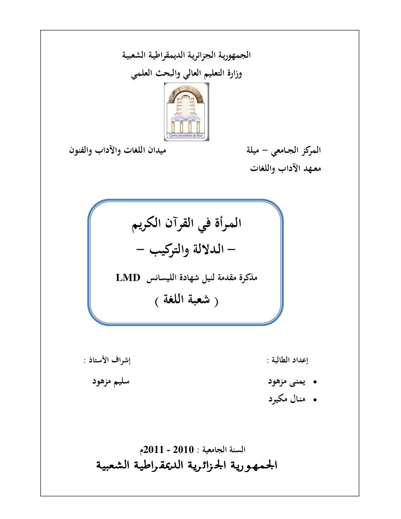 يمنى مزهود et al. (2011). المرأة في القرآن الكريم الدلالة والتركيب.