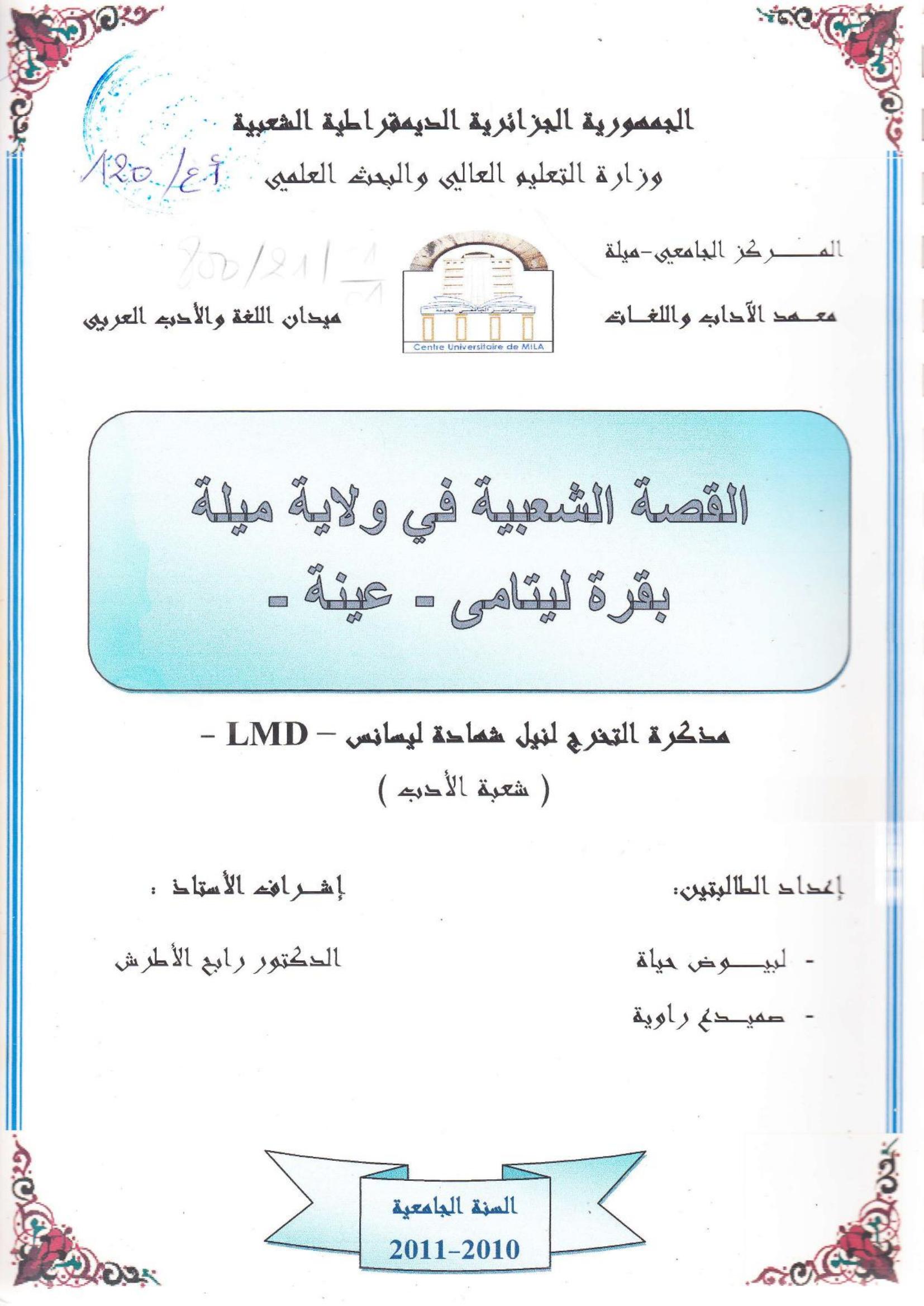 لبيوض حياة et al. (2011). القصة الشعبية في ولاية ميلة بقرة ليتامى -عينة-.