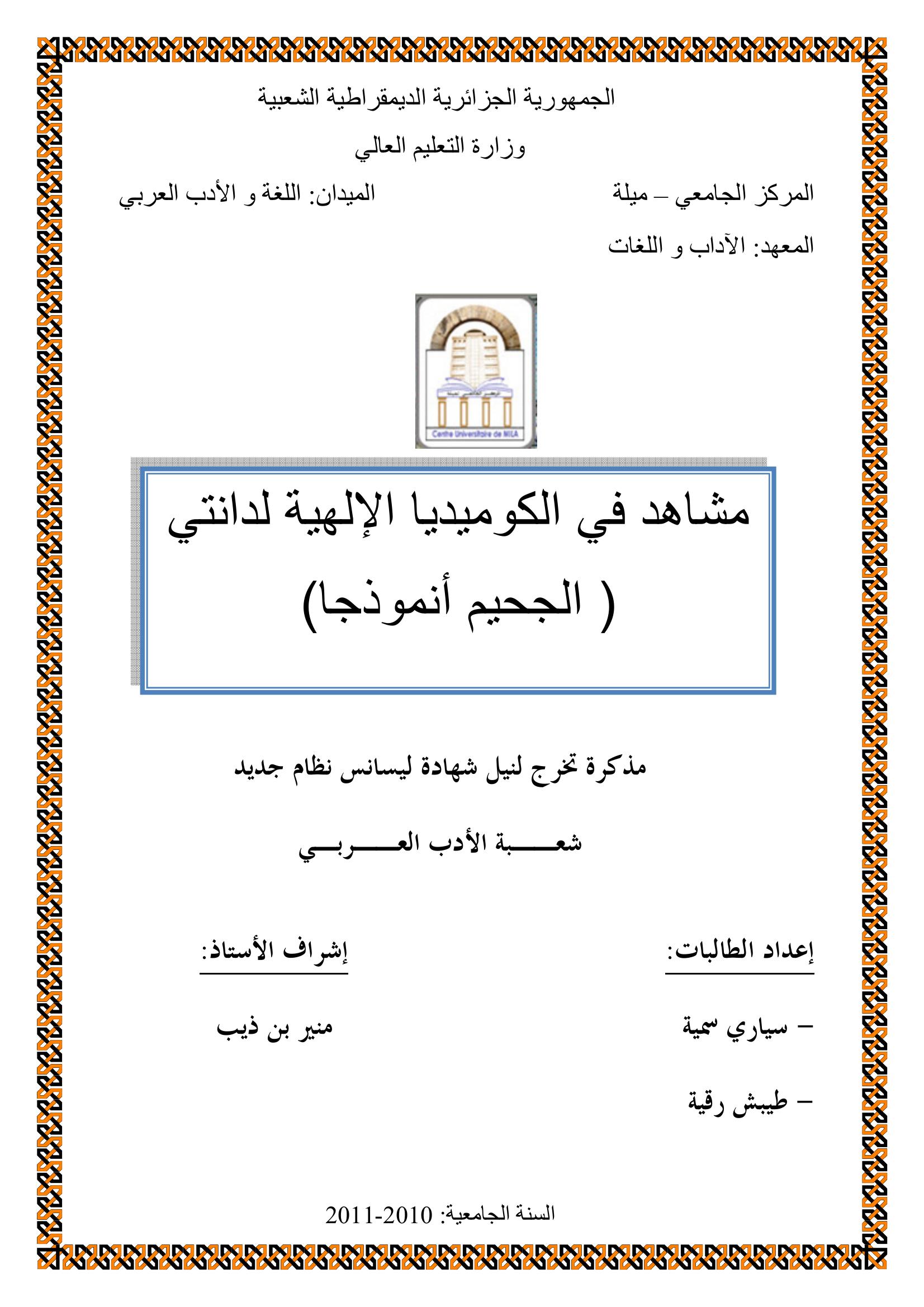 سياري سمية et al. (2011). المشاهد في الكوميديا الإلهية لدانتي -الجحيم أنموذجا-.