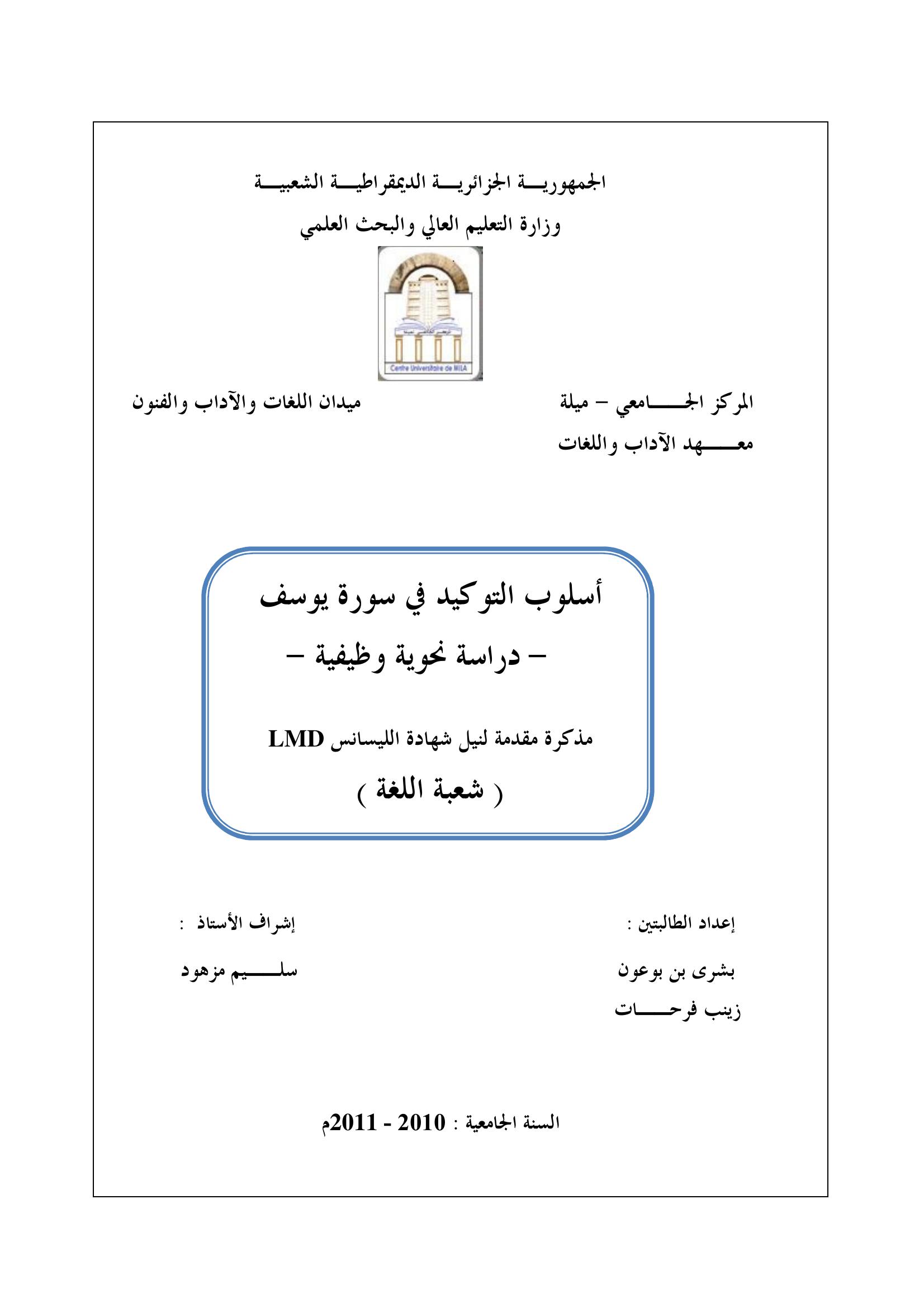 خديجة بوبنيو et al. (2011). اسلوب النفي و التوكيد في سورة يوسف.