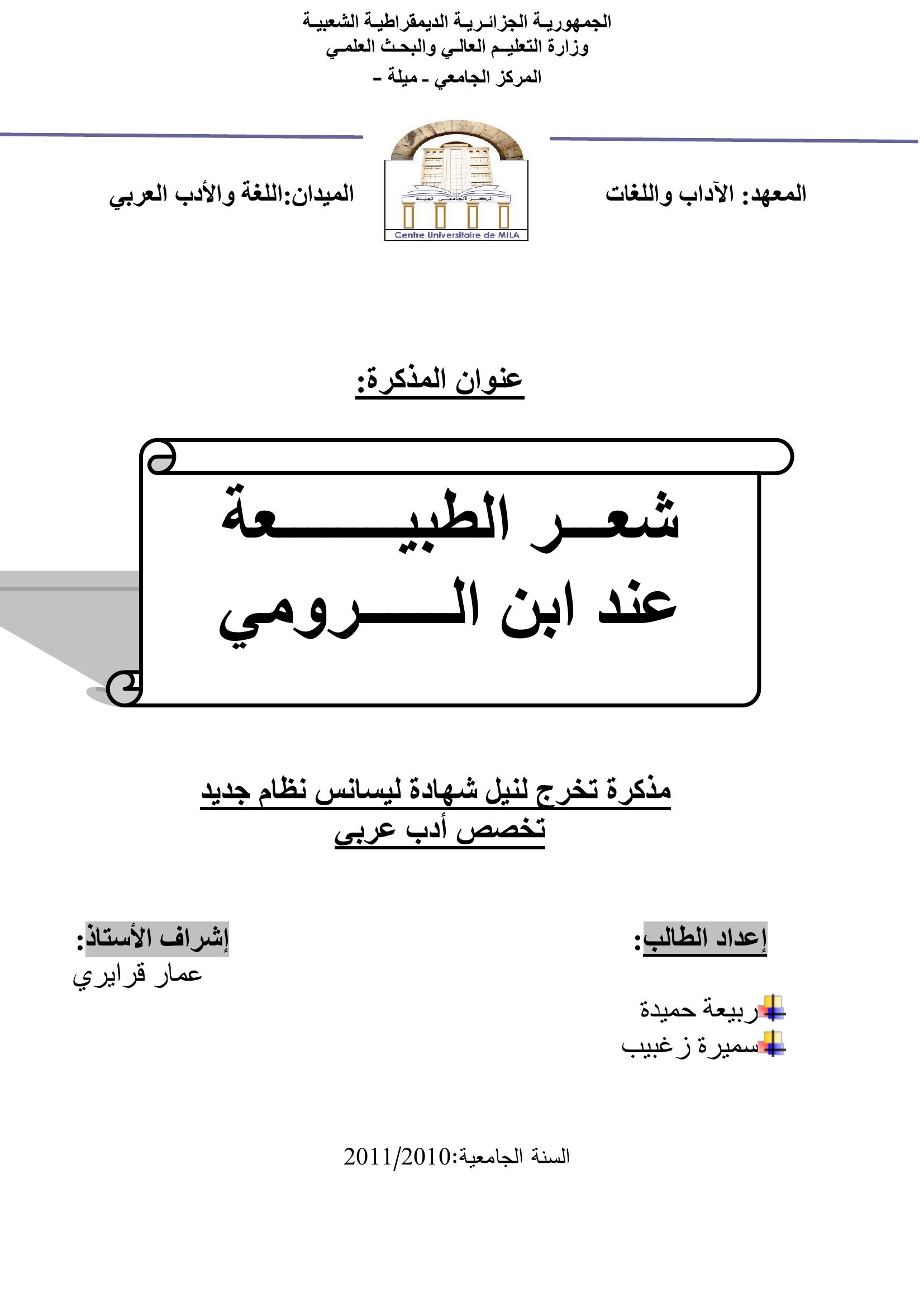 ربيعة حميدة et al. (2011). شعر الطبيعة عند إبن الرومي.