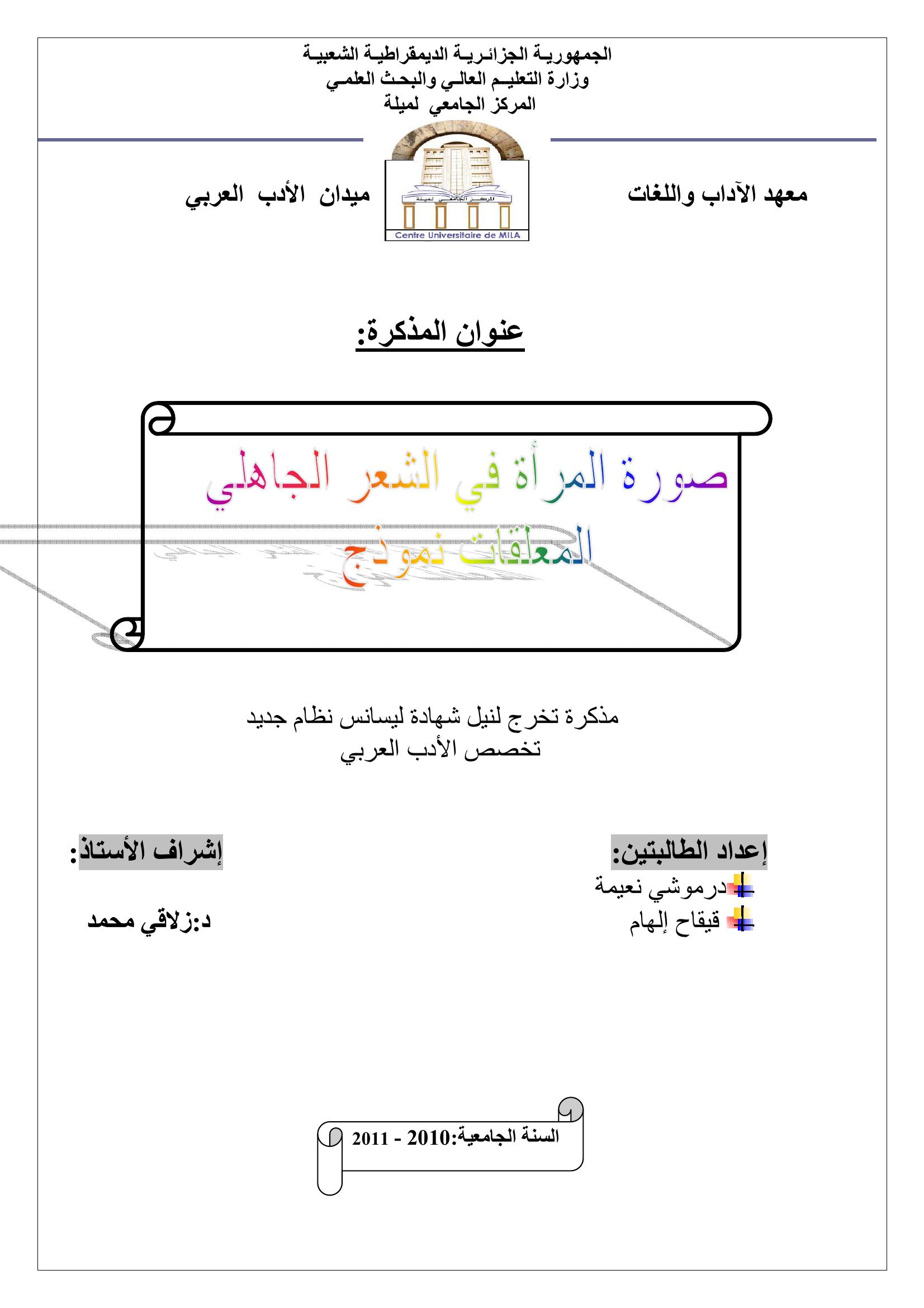 درموشي نعيمة et al. (2011). صورة المرأة في الشعر الجاهلي "المعلقات نموذج".