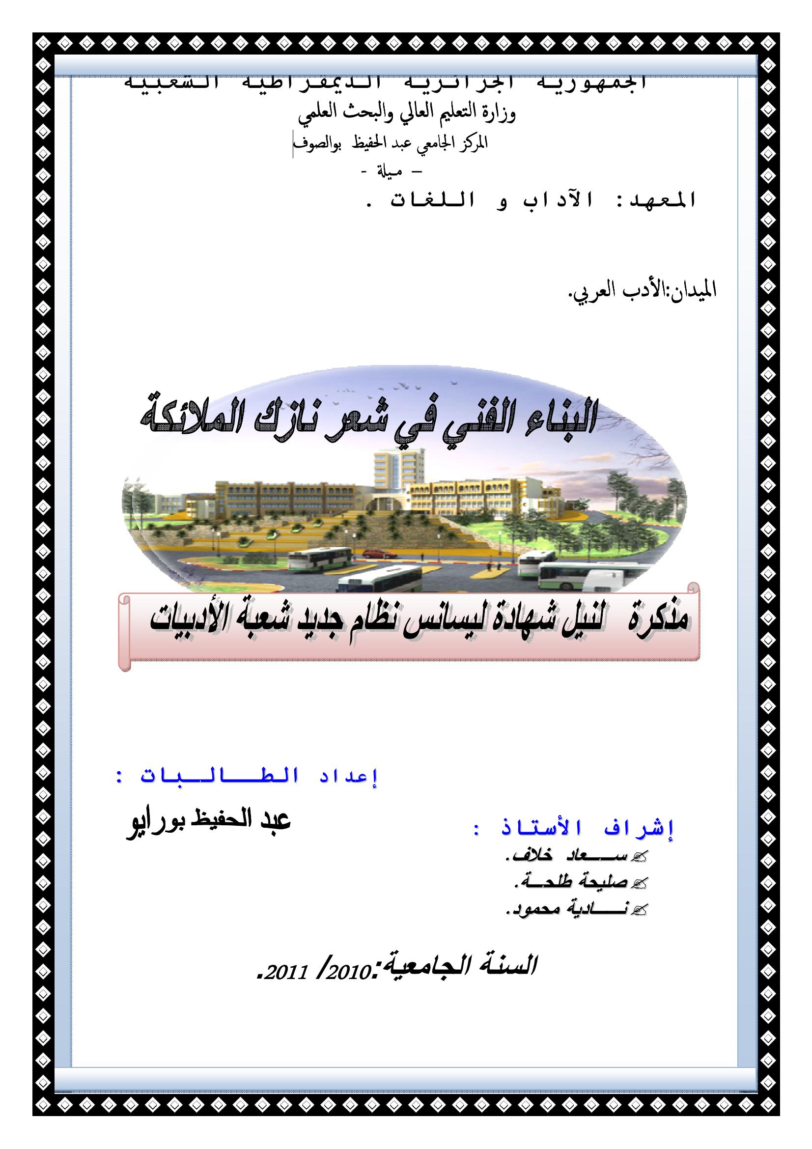 سعاد خلاف et al. (2011). البناء الفني في شعر "نازك الملائكة".