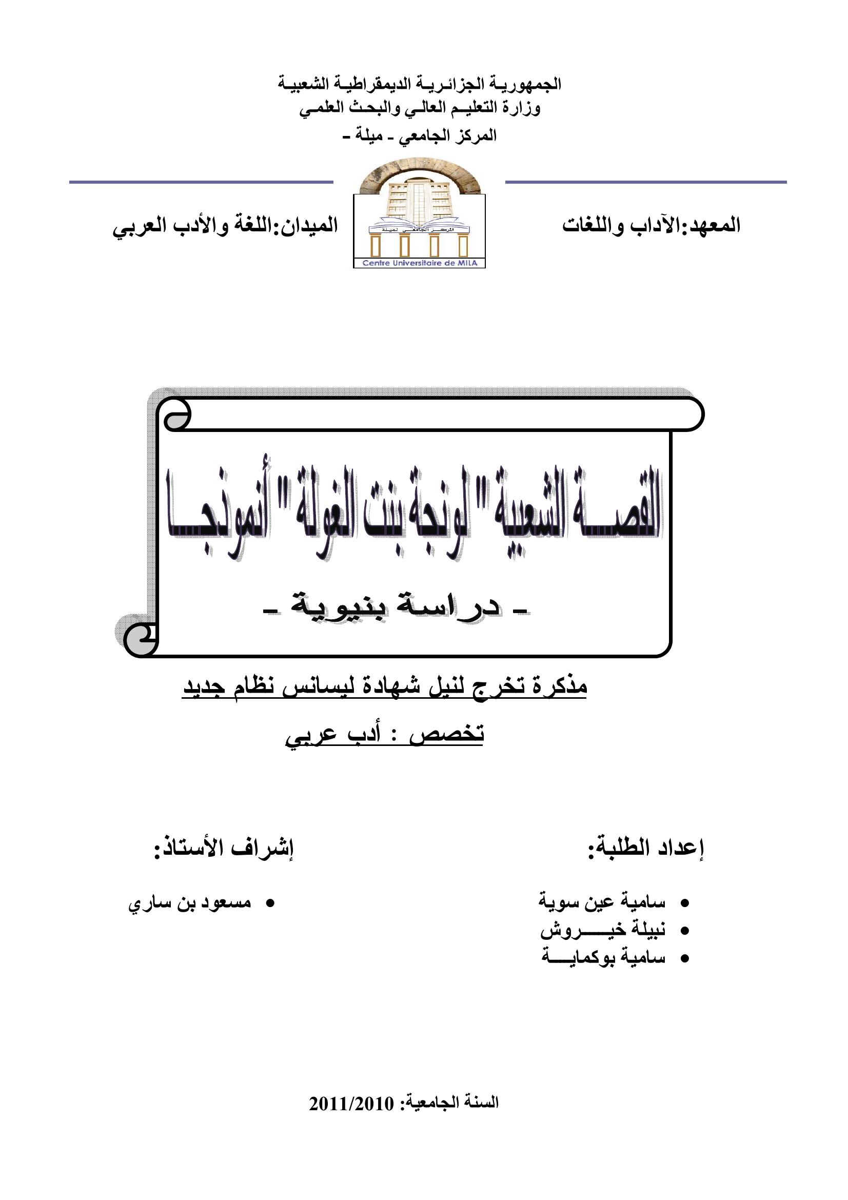 سامية بو كماية et al. (2011). القصة الشعبية "لونجة بنت الغولة"أنمودجا" دراسة بنيوية-.