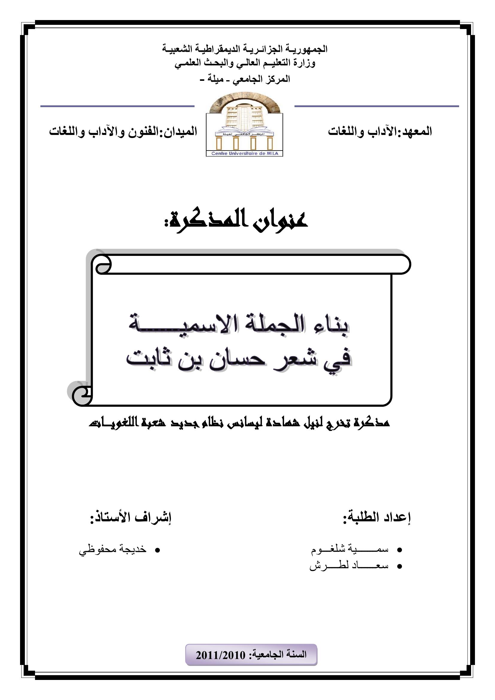 سمية شلغوم et al. (2011). بناء الجملة الإسمية في شعر حسان بن ثابت.