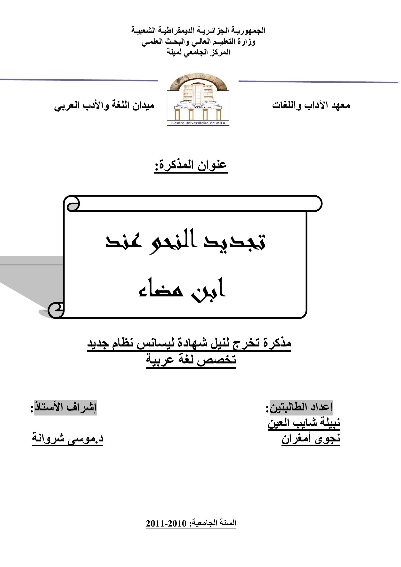نبيلة شايب العين et al. (2011). تجديد النحو عند ابن مضاء.