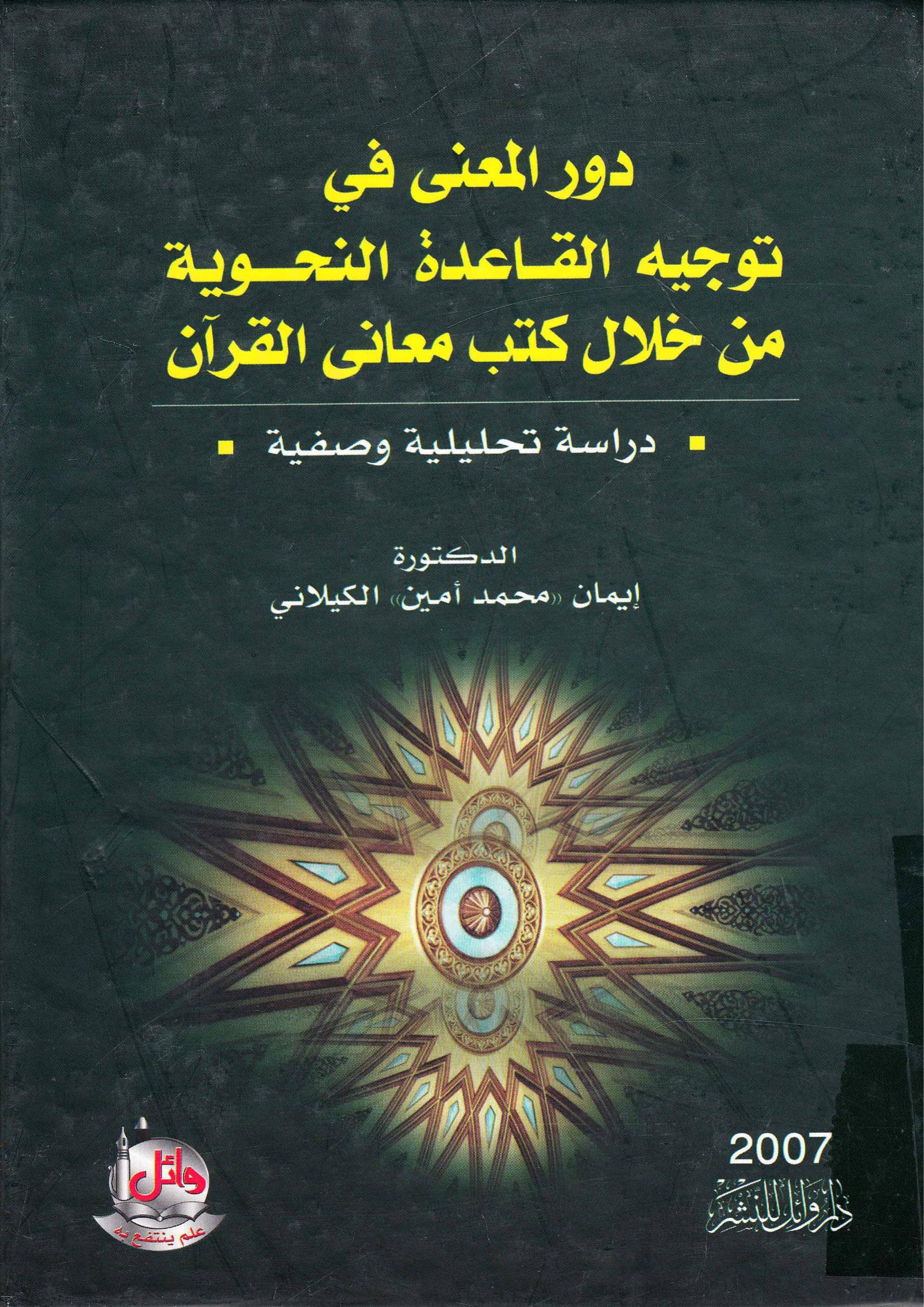 د إيمان محمد أمين الكيلاني (2008). دور المعنى في توجيه القاعدة النحوية من خلال كتب معاني القرآن (ط.1) . دار وائل للنشر والتوزيع;