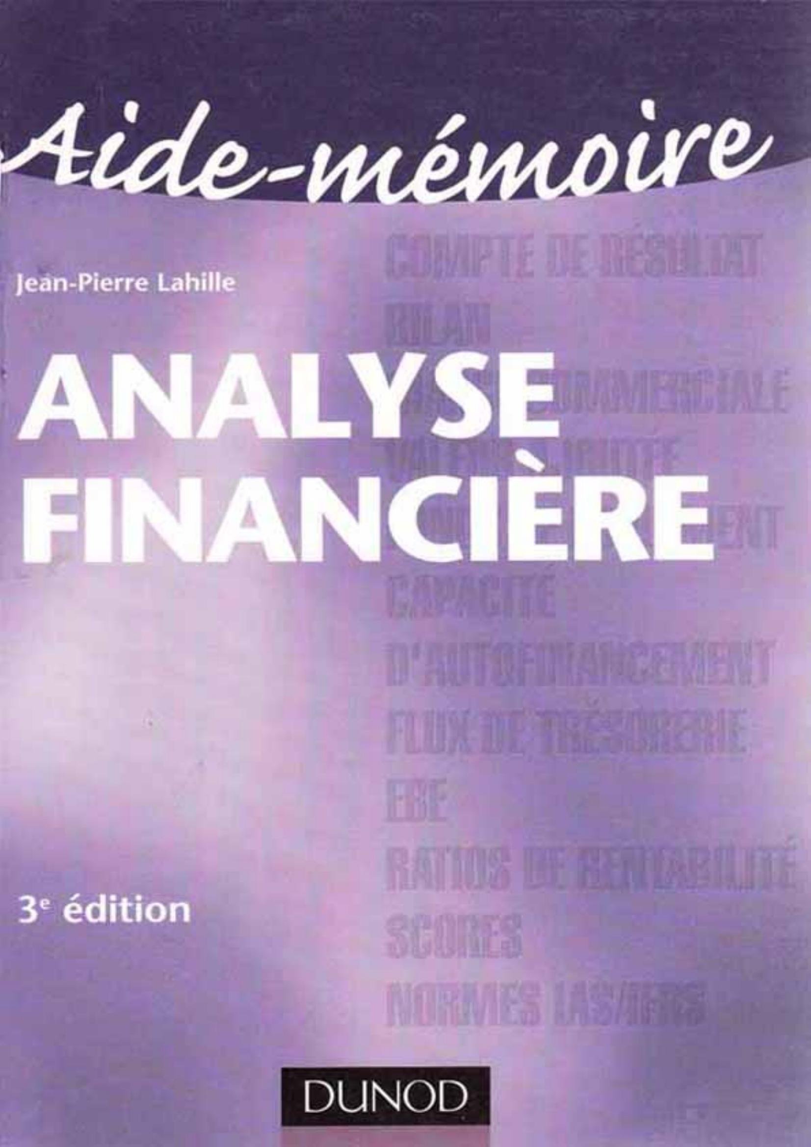 jaen -pierre lahille (2007). Aide-mémoire analyse financiére (3.éd) . Dunod;