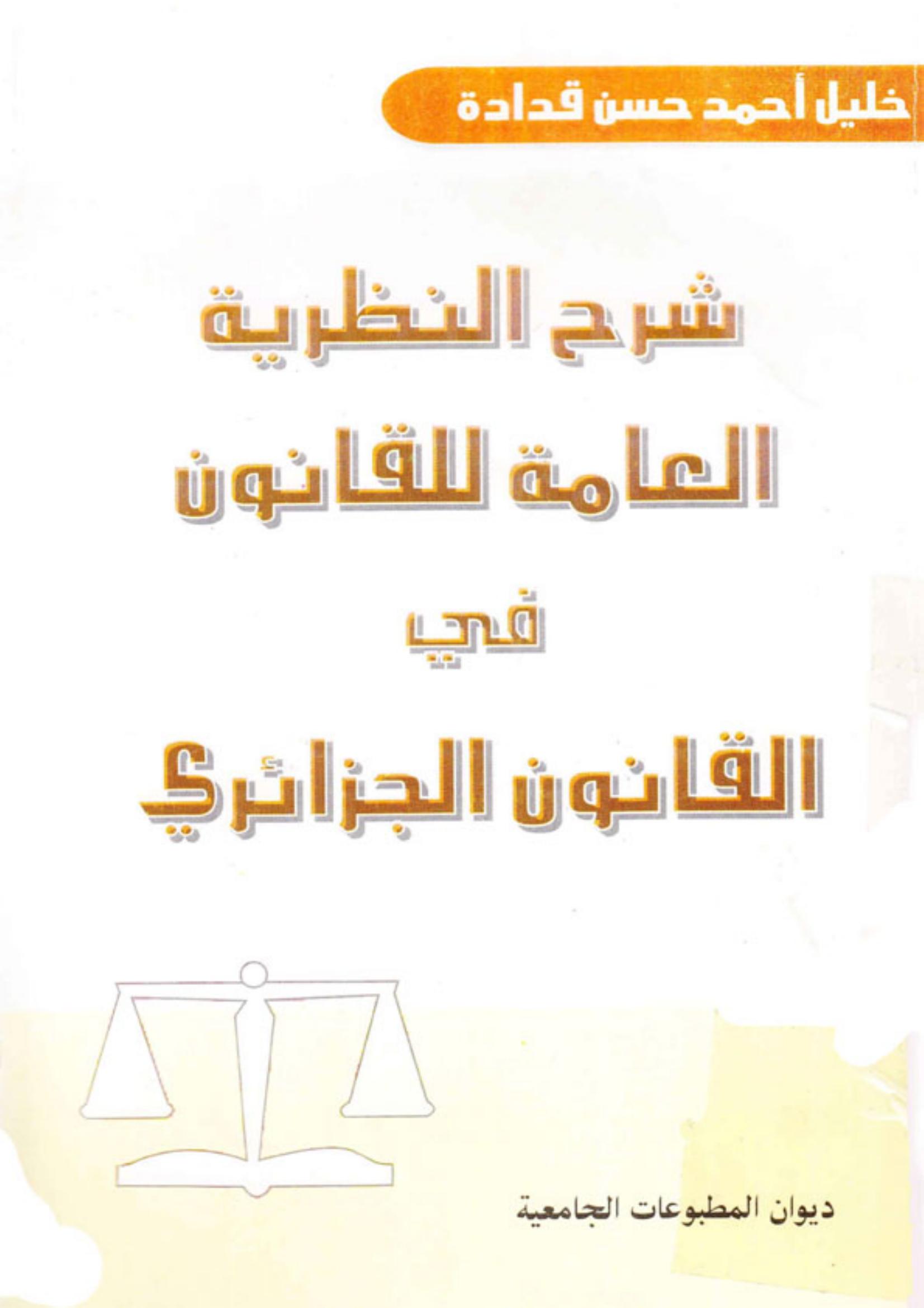 خليل أحمد حسن قدادة (2005). شرح النظرية العامة للقانون في القانون الجزائري (ط.5) . ديوان المطبوعات الجامعية;