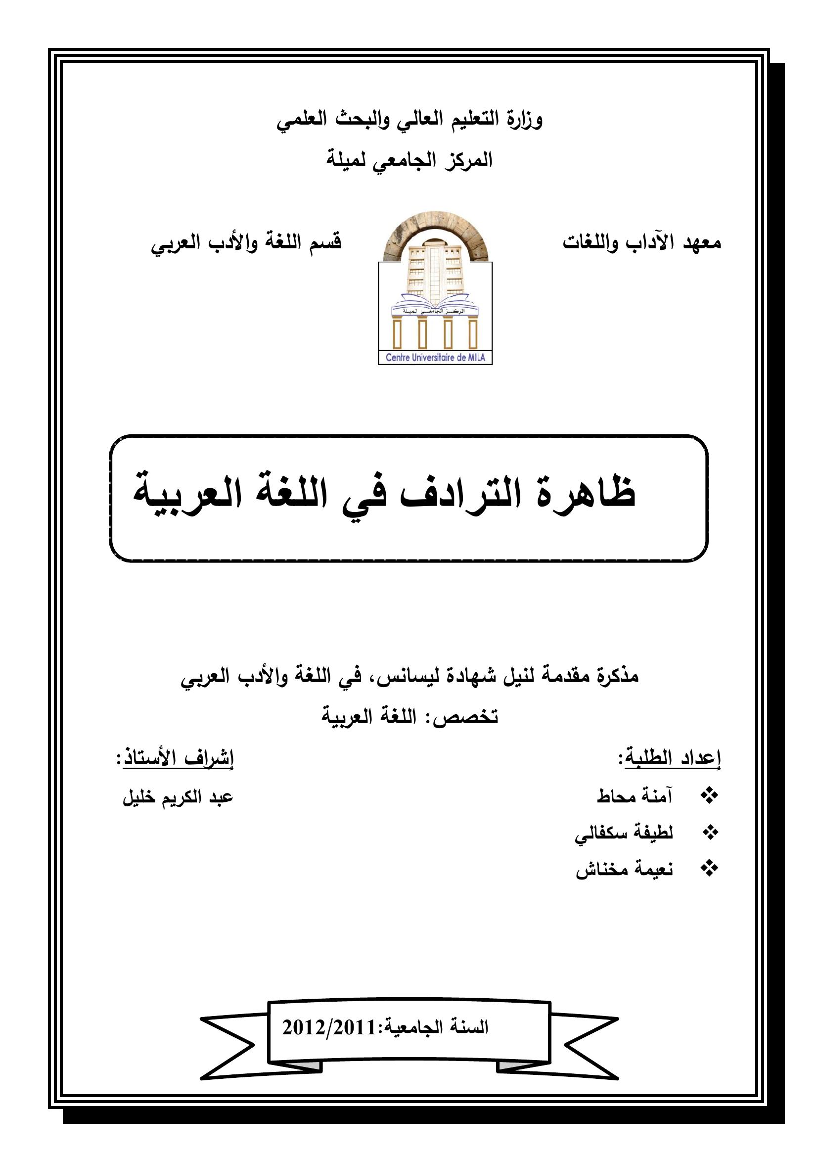 آمنة محاط et al. (2012). ظاهرة الترادف في اللغة العربية.
