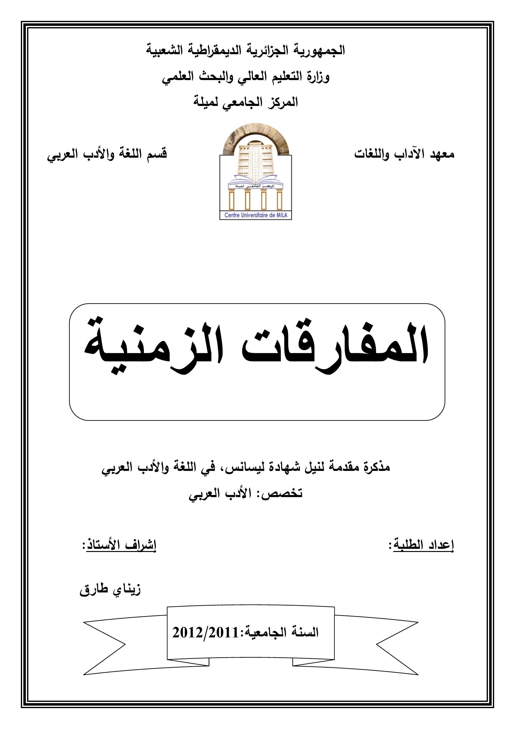 العيفة أسماء et al. (2012). المفارقات الزمنية في رواية زهور الأزمنة المتوحشة لجلالي خلاص.