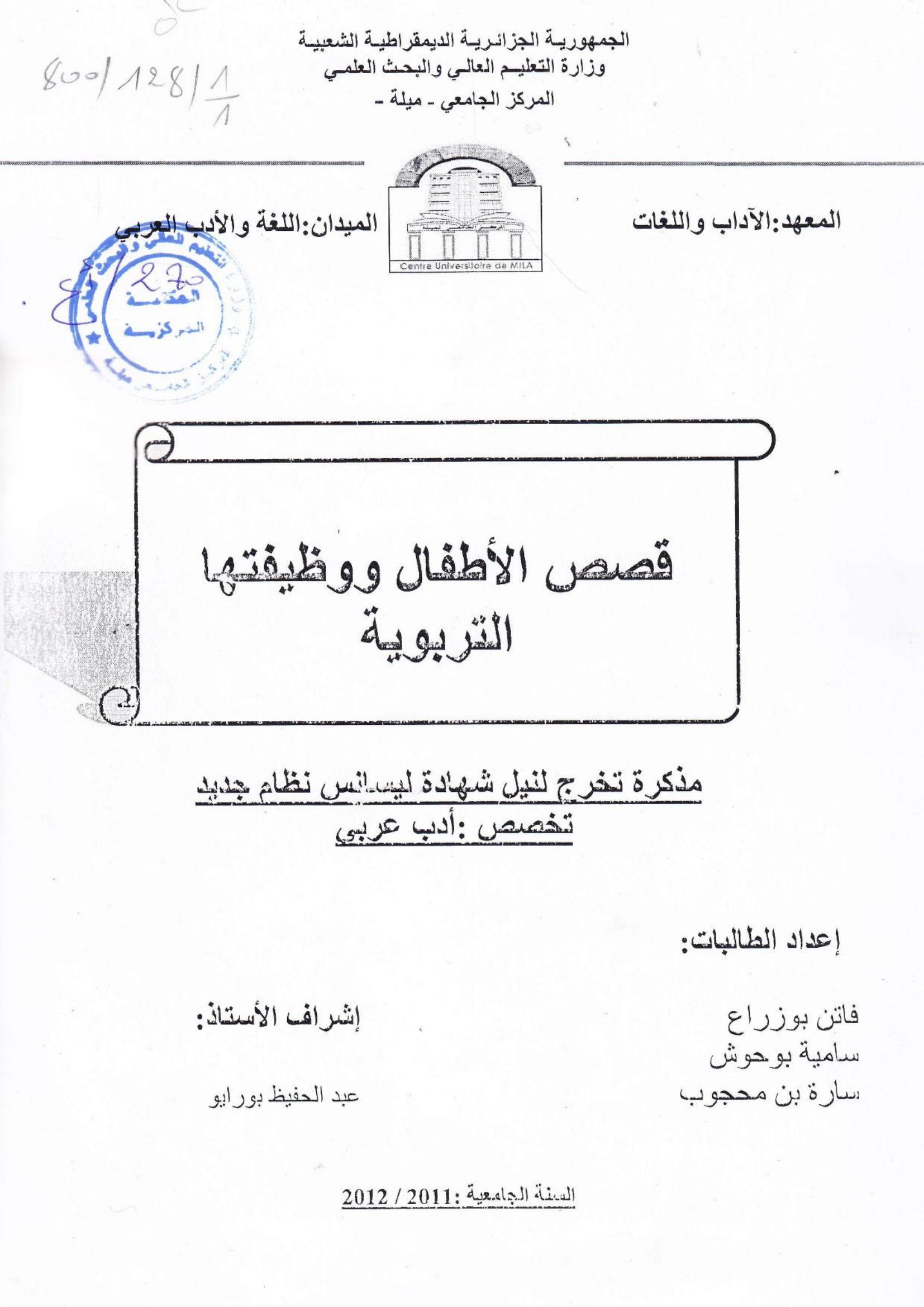 فاتن بوزراع et al. (2012). قصص الأطفال ووظيفتها التربوية.