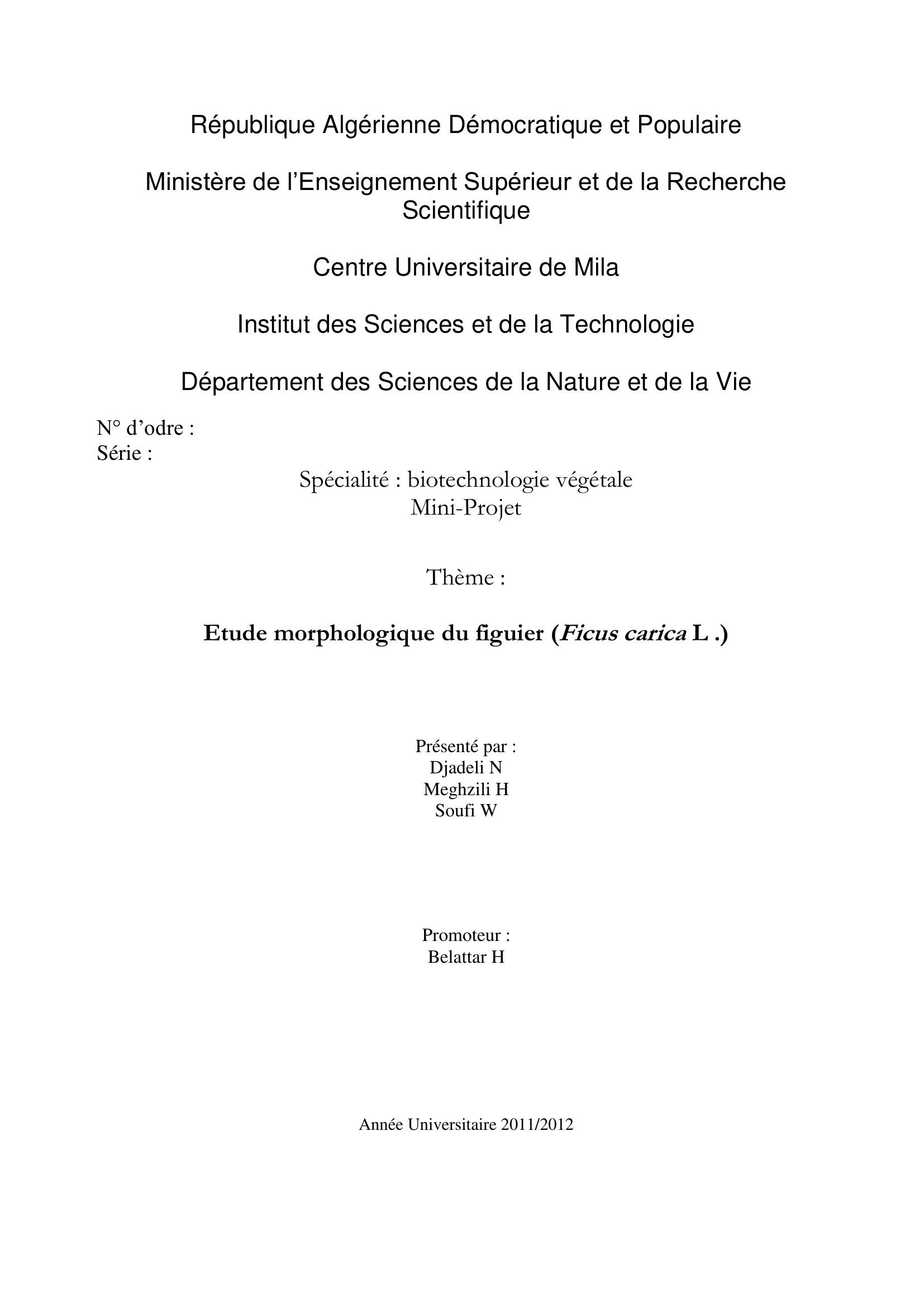 DJADLI Nadia et al. (2012). Etude morphologique du figuier (ficus carica L.