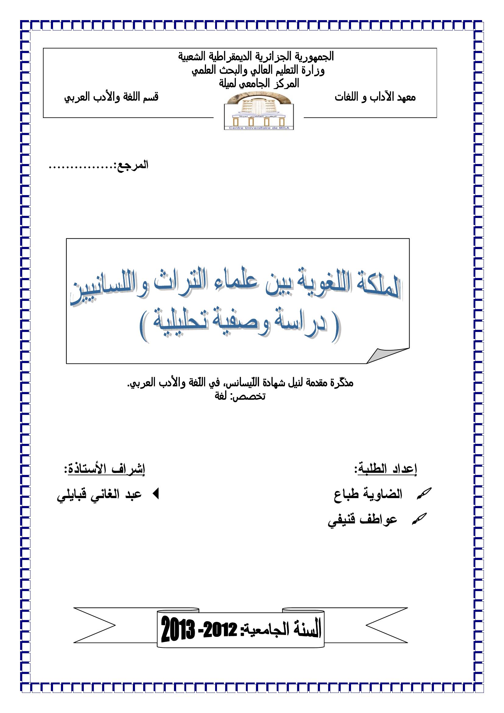 الضاوية طباع et al. (2013). الملكة اللغوية بين علماء التراث واللسانيين دراسة وصفية تحليلية.
