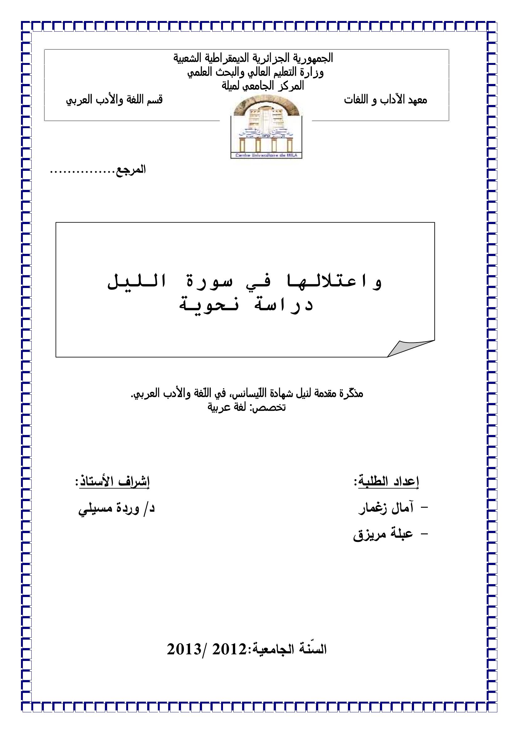 أمال زغمار et al. (2013). دلالة الأفعال المضارعة , واعتلالها في سورة الليل دراسة نحوية.