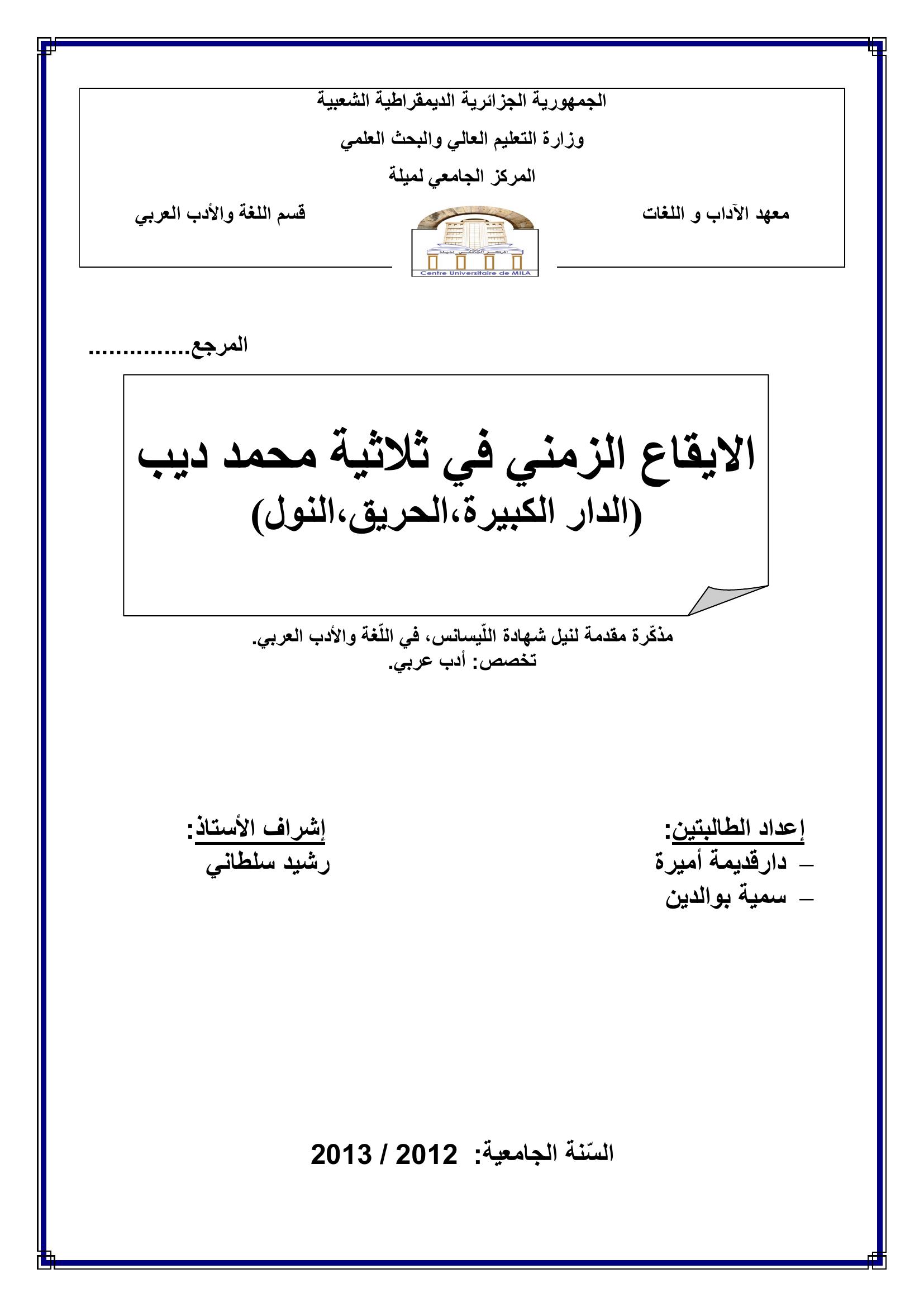 دار قديمة أميرة et al. (2013). الايقاع الزمني في ثلاثية محمد ديب الدارالكبيرة , الحريق , النول.