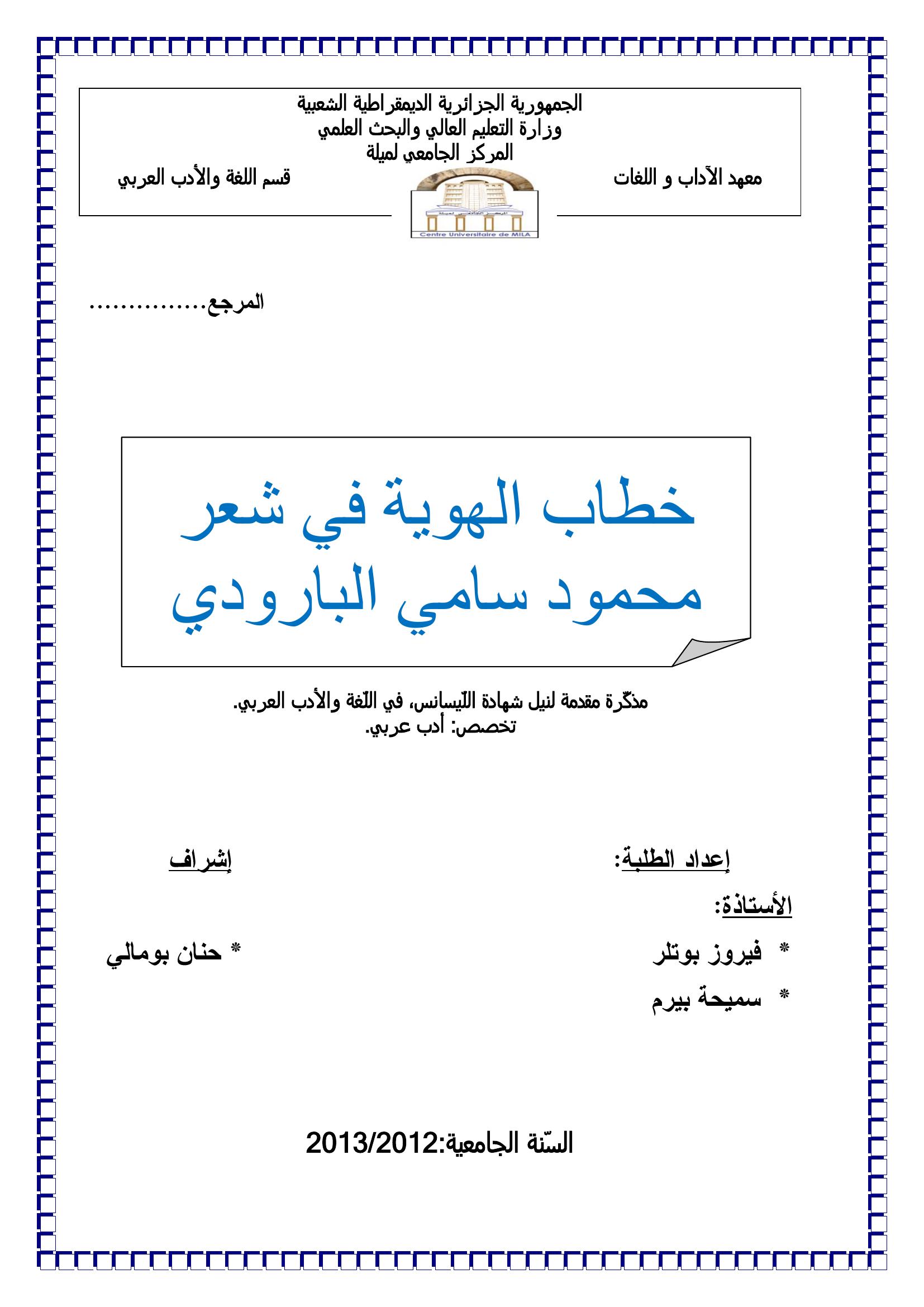 فيروز بوتلر et al. (2013). خطاب الهوية في شعر محمود سامي البارودي.