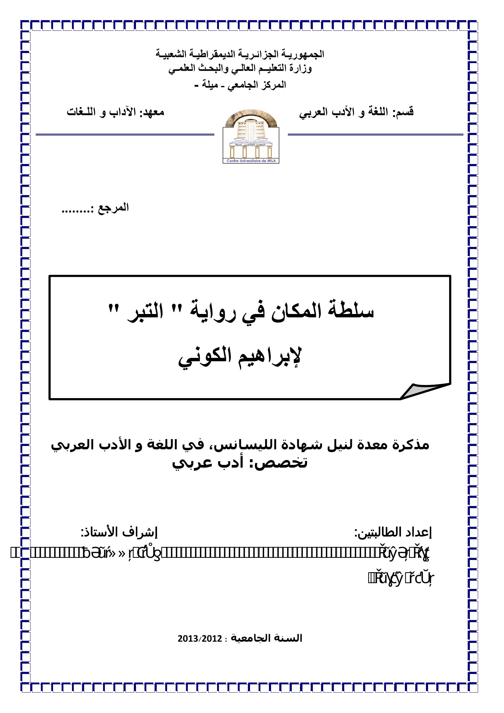 حياة بوعدة et al. (2013). جماليات المكان في رواية "التبر " لإبراهيم الكوني.