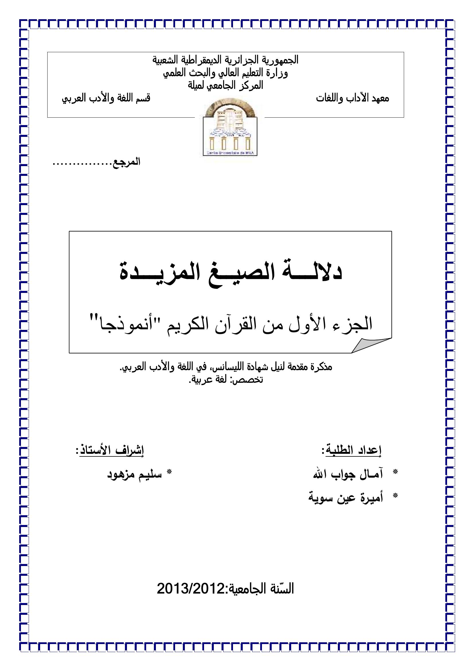 أمال جواب الله et al. (2013). دلالة الصيغ المزيدة الجزء الأول من القرآن الكريم " أنموذجا ".