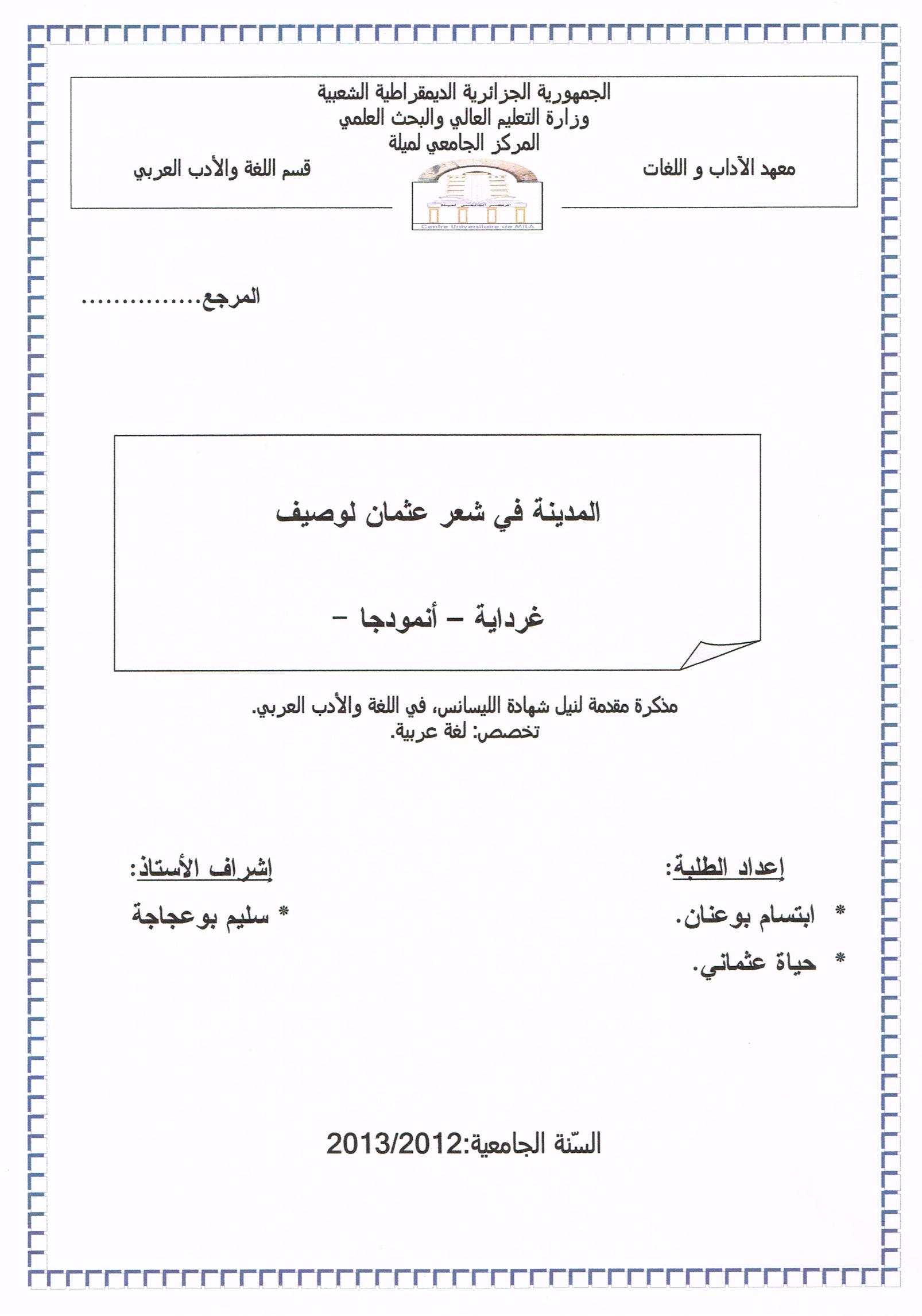 ابتسام بوعنان et al. (2013). المدينة في شعر عثمان لوصيف غرداية - أنموذجا -.