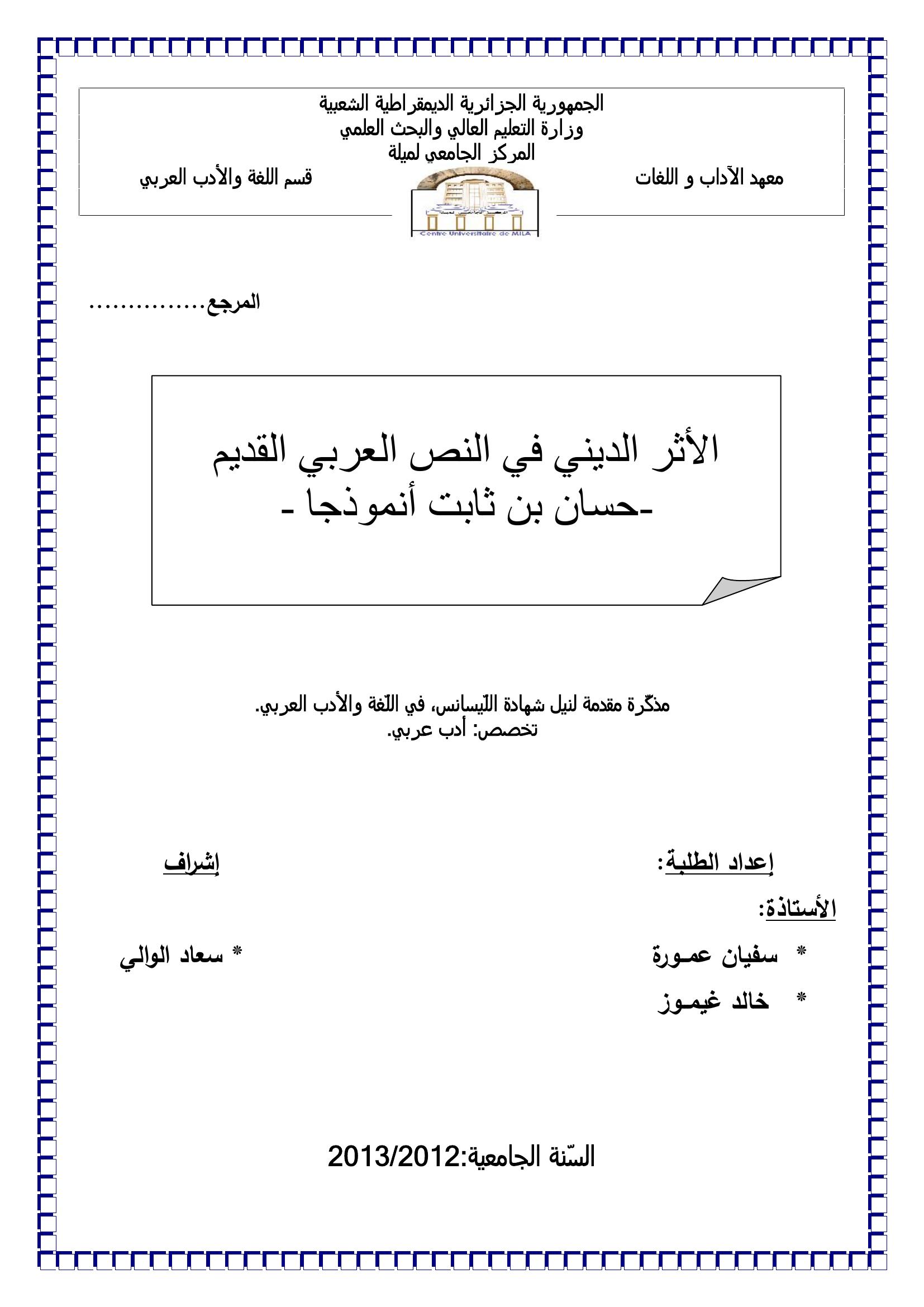 سفيان عمورة et al. (2013). الأثر الديني في النص العربي القديم حسان بن ثابت أنموذجا.