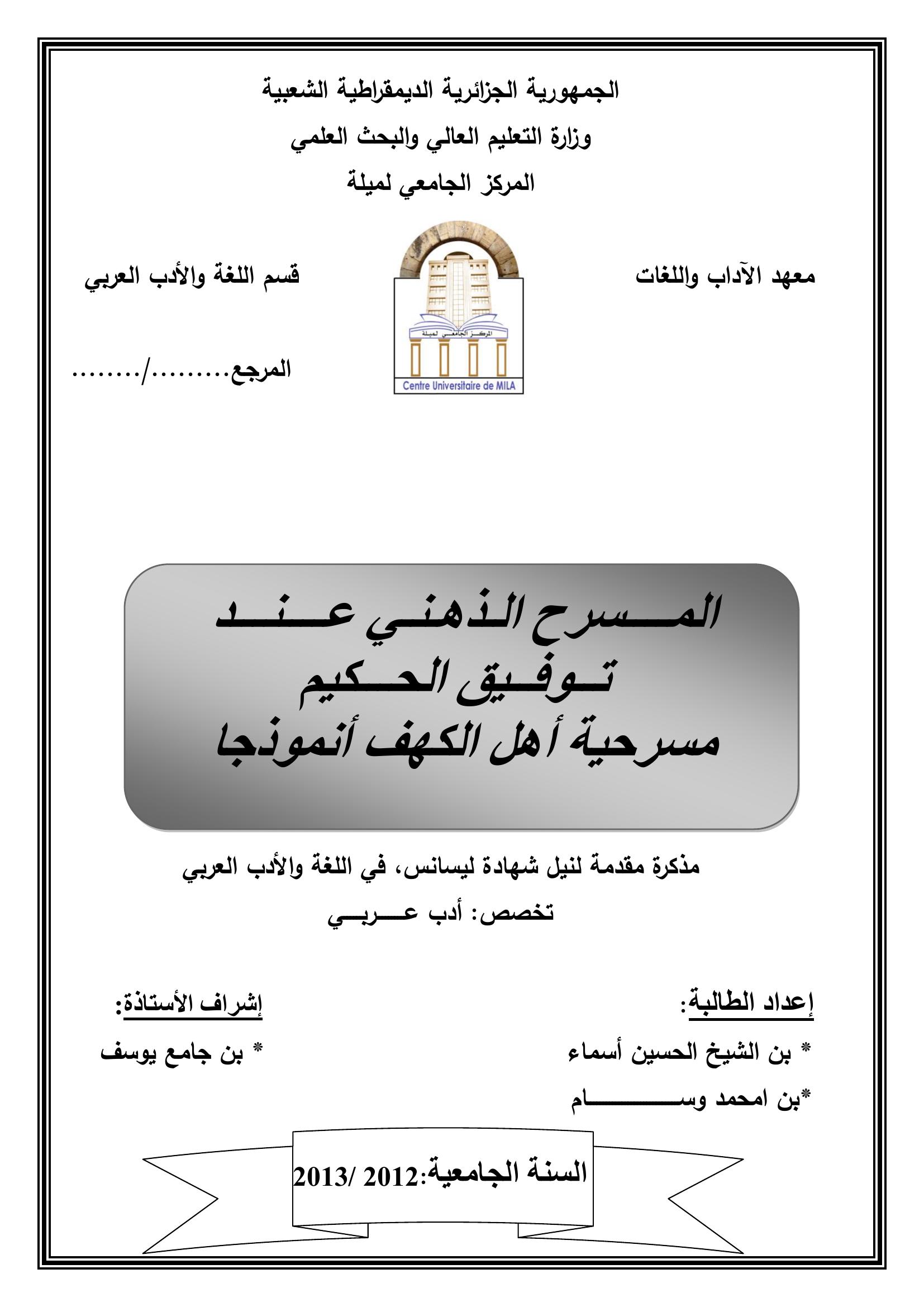 بن امحمد وسام et al. (2013). المسرح الذهني عند توفيق الحكيم مسرحية أهل الكهف أنموذجا.