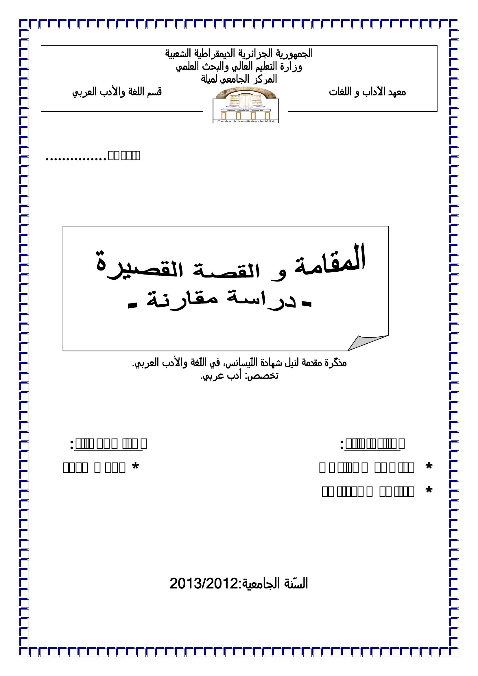 سمية بولعشب et al. (2013). المقامة والقصة القصيرة دراسة مقارنة.